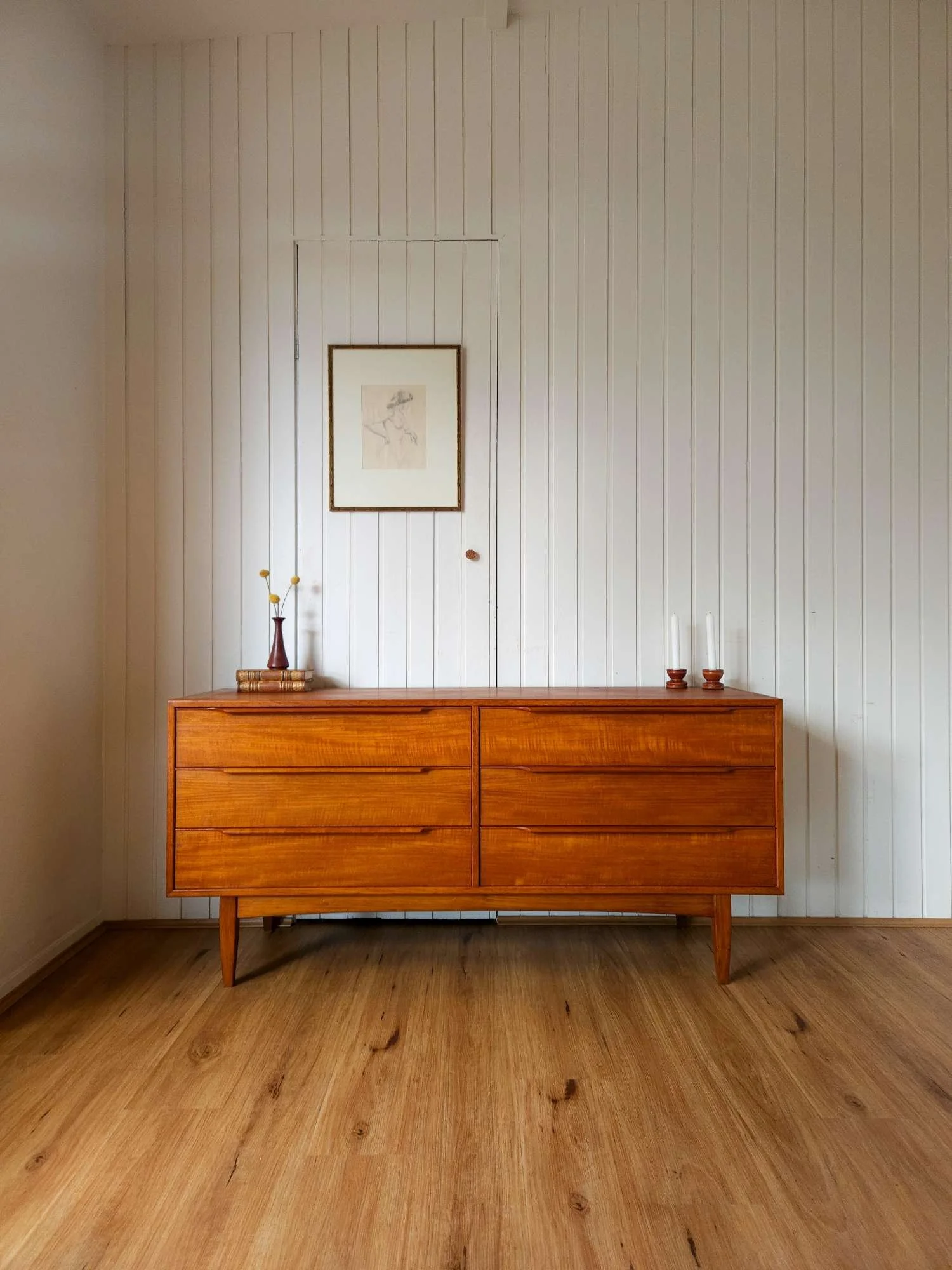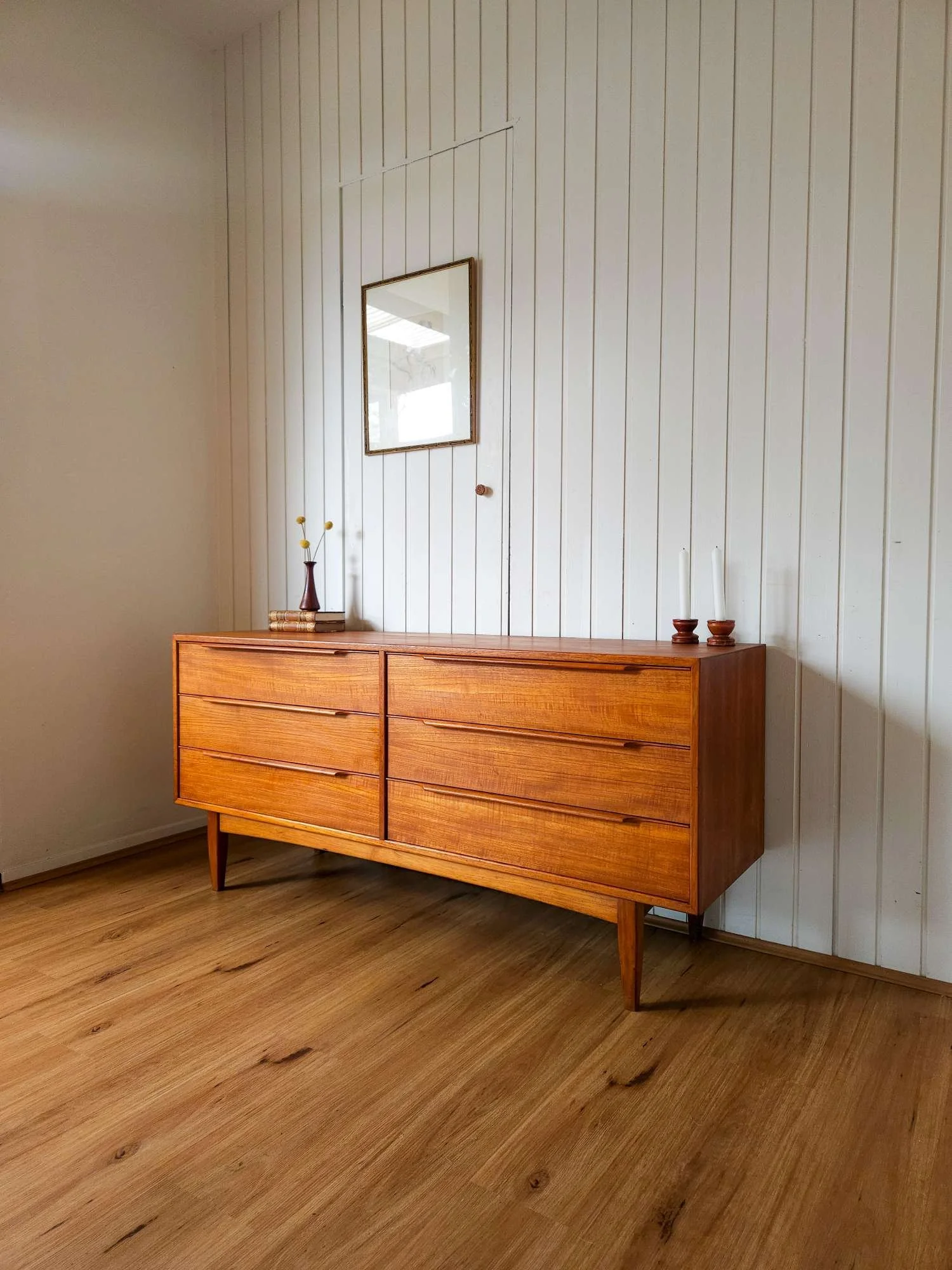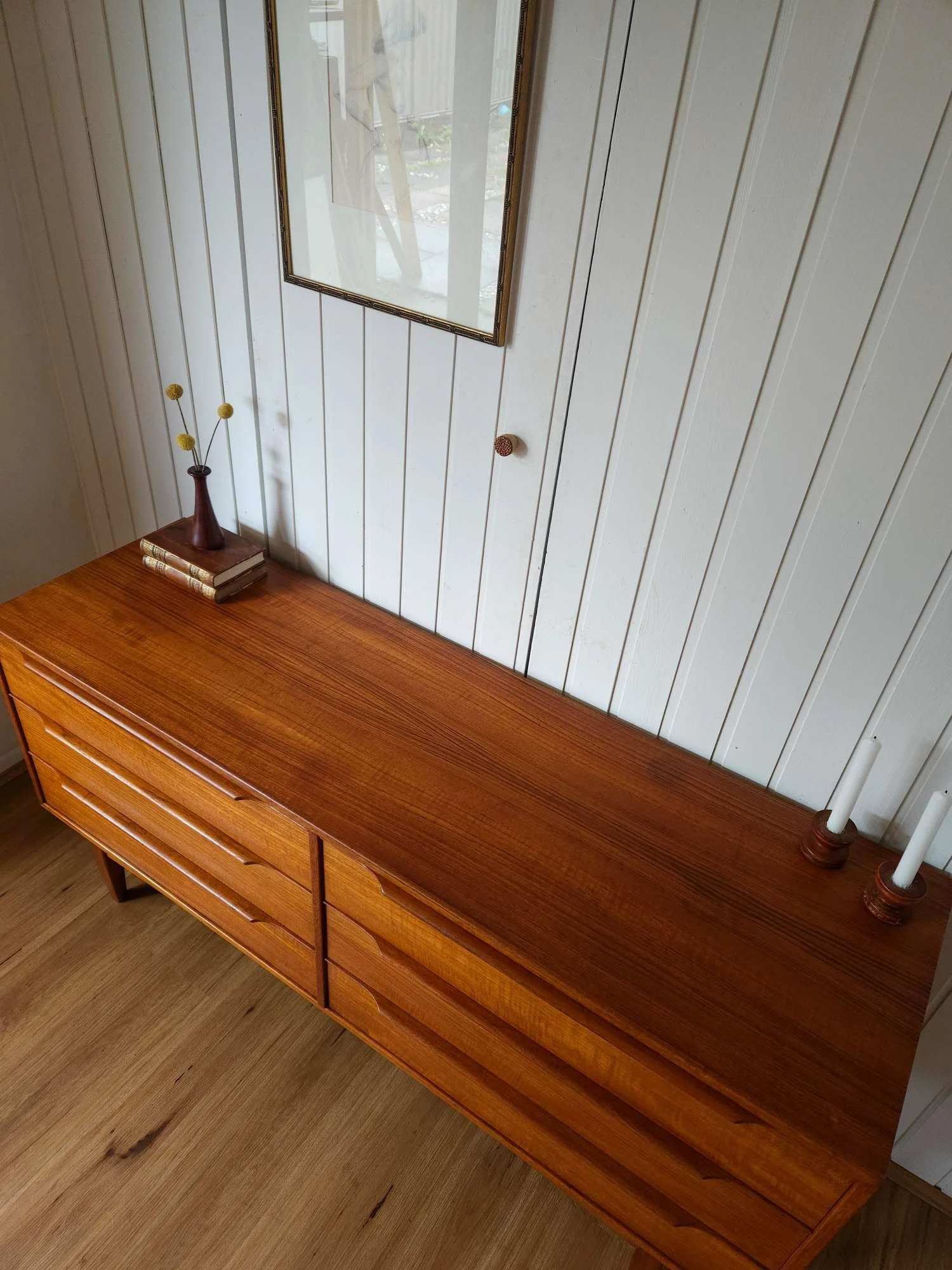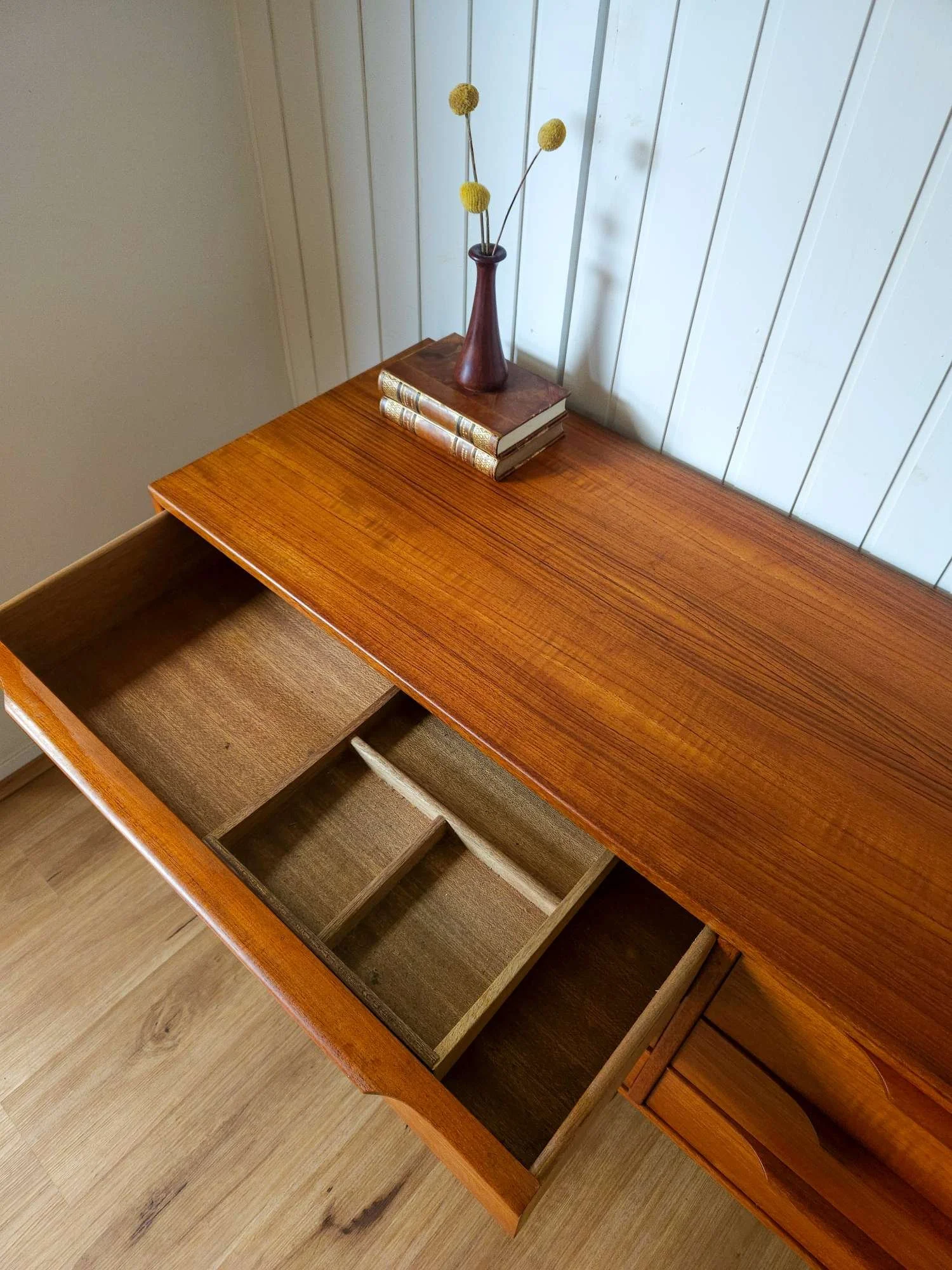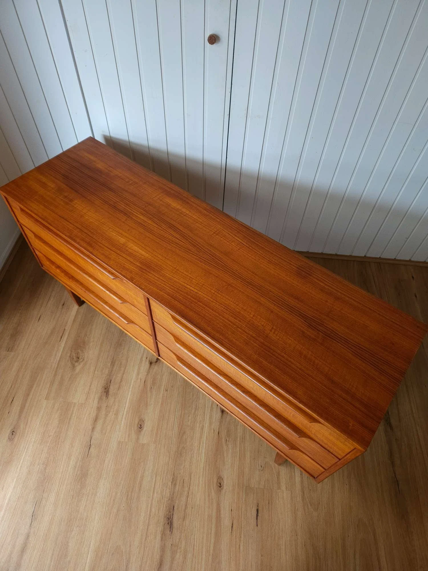 Classic mid century vintage dresser sideboard by Hans Hayson Furniture in teak and Blackwood.