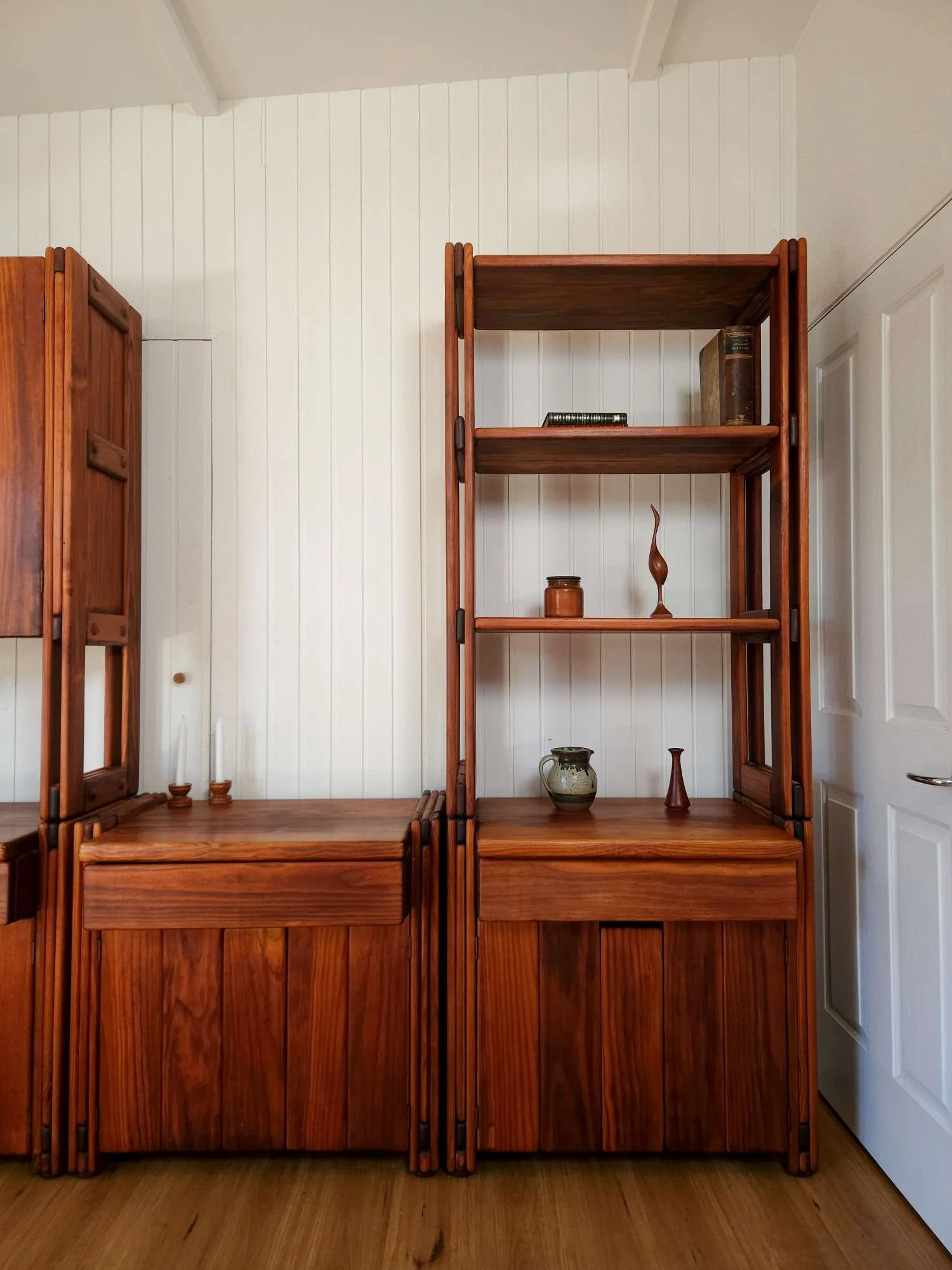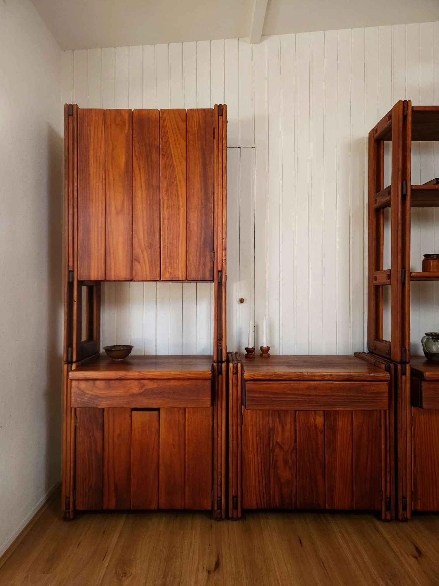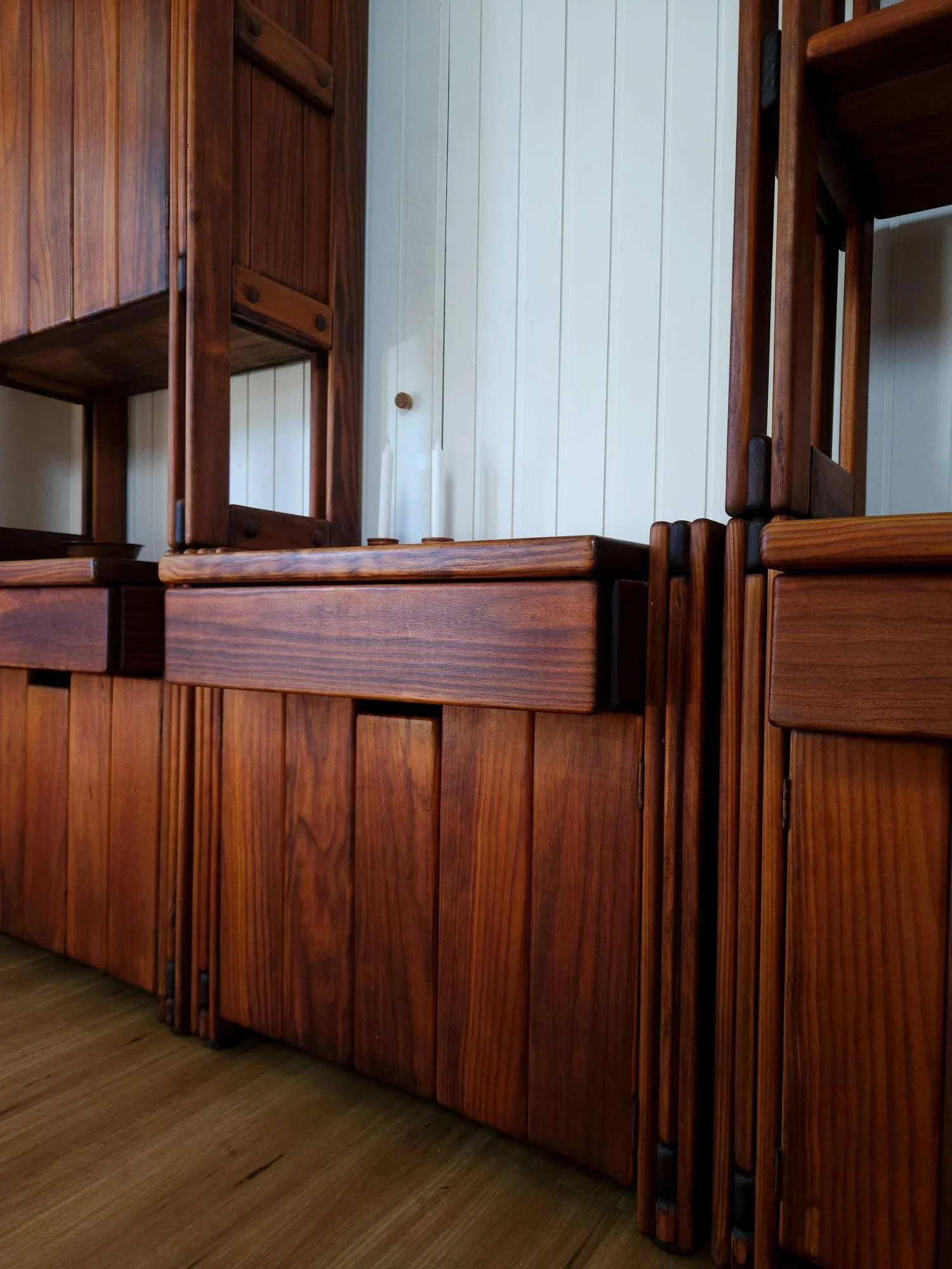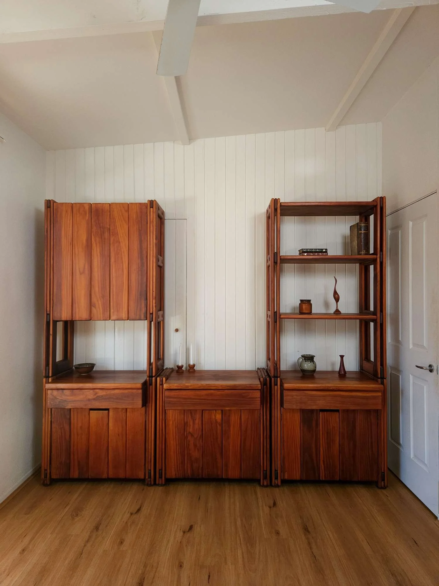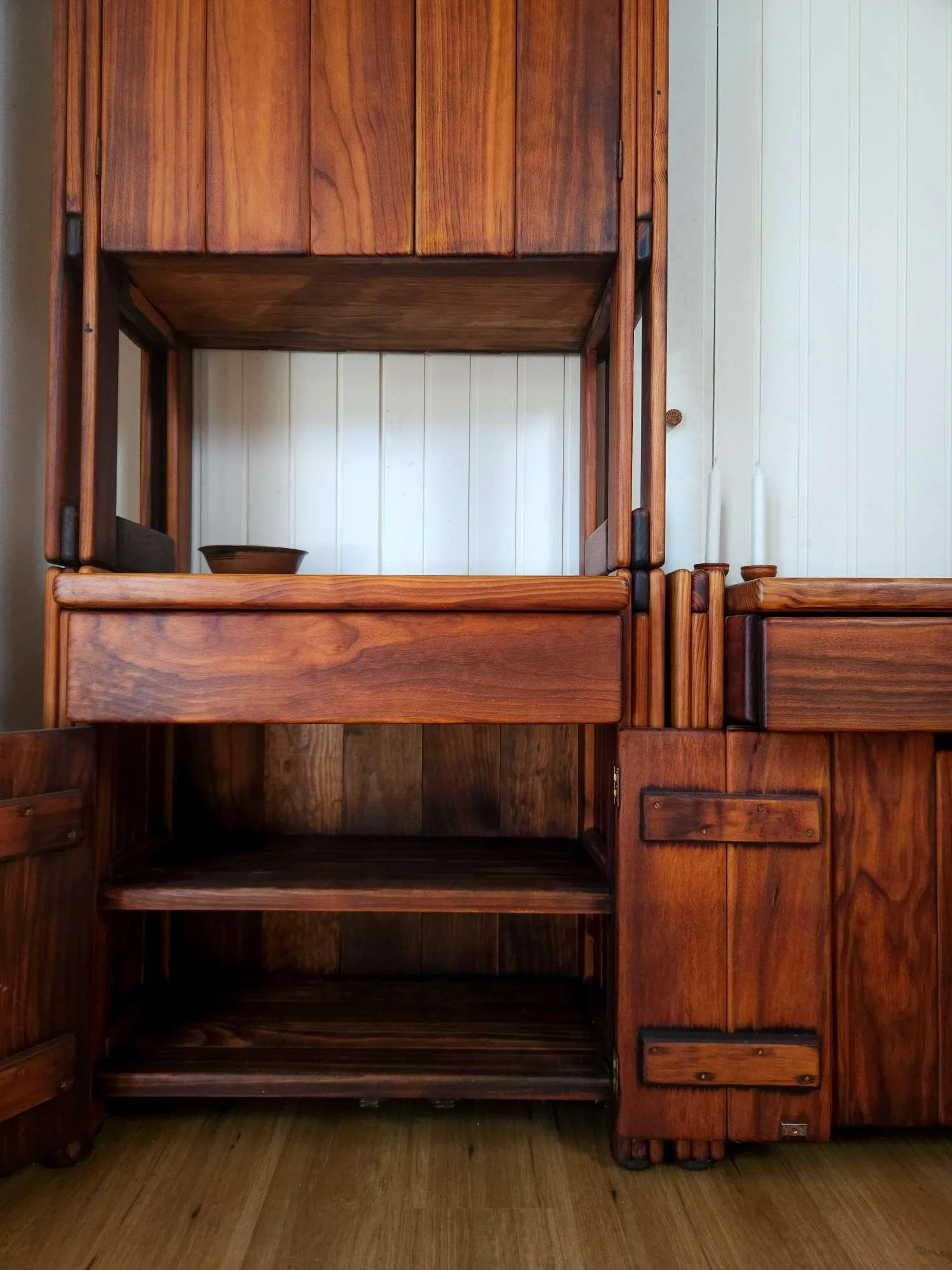 Classic Vintage Modular Wall Unit in Solid Wood. Crafted by Post and Rail Circa 1970s.