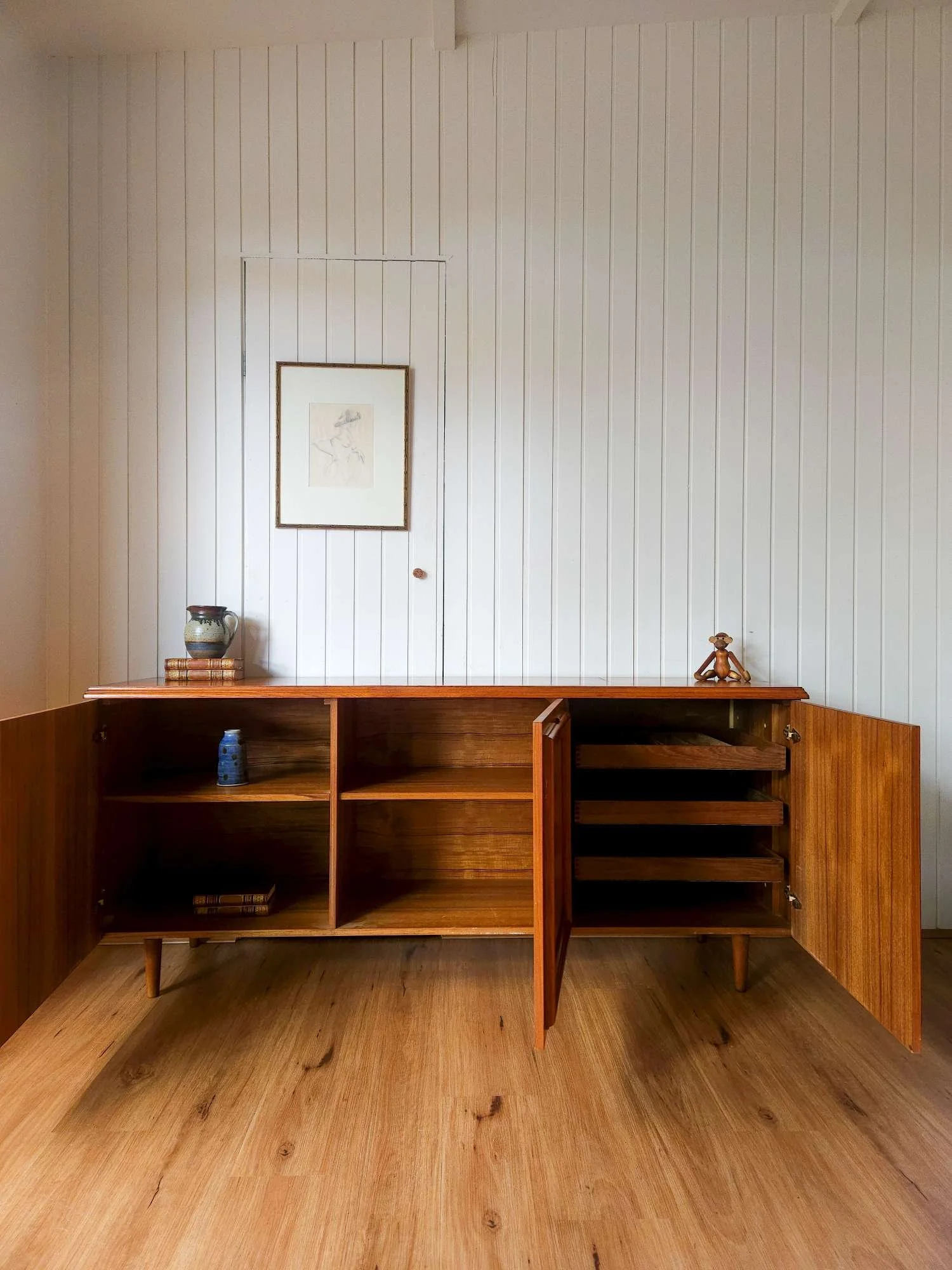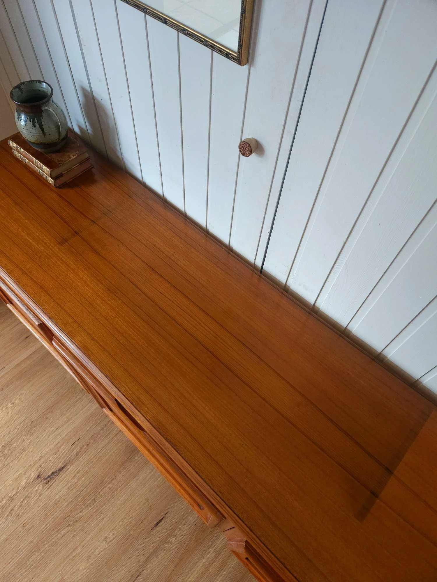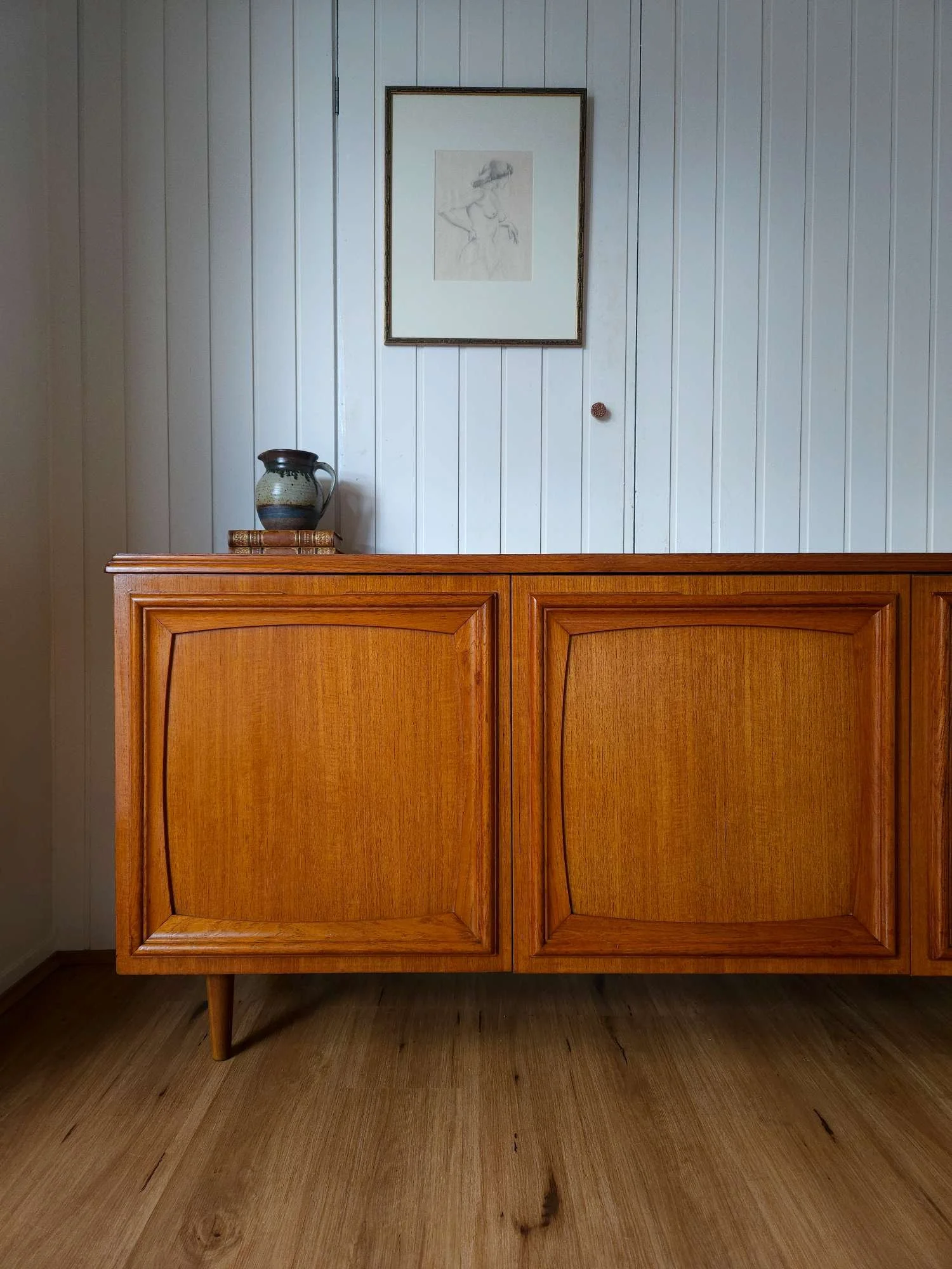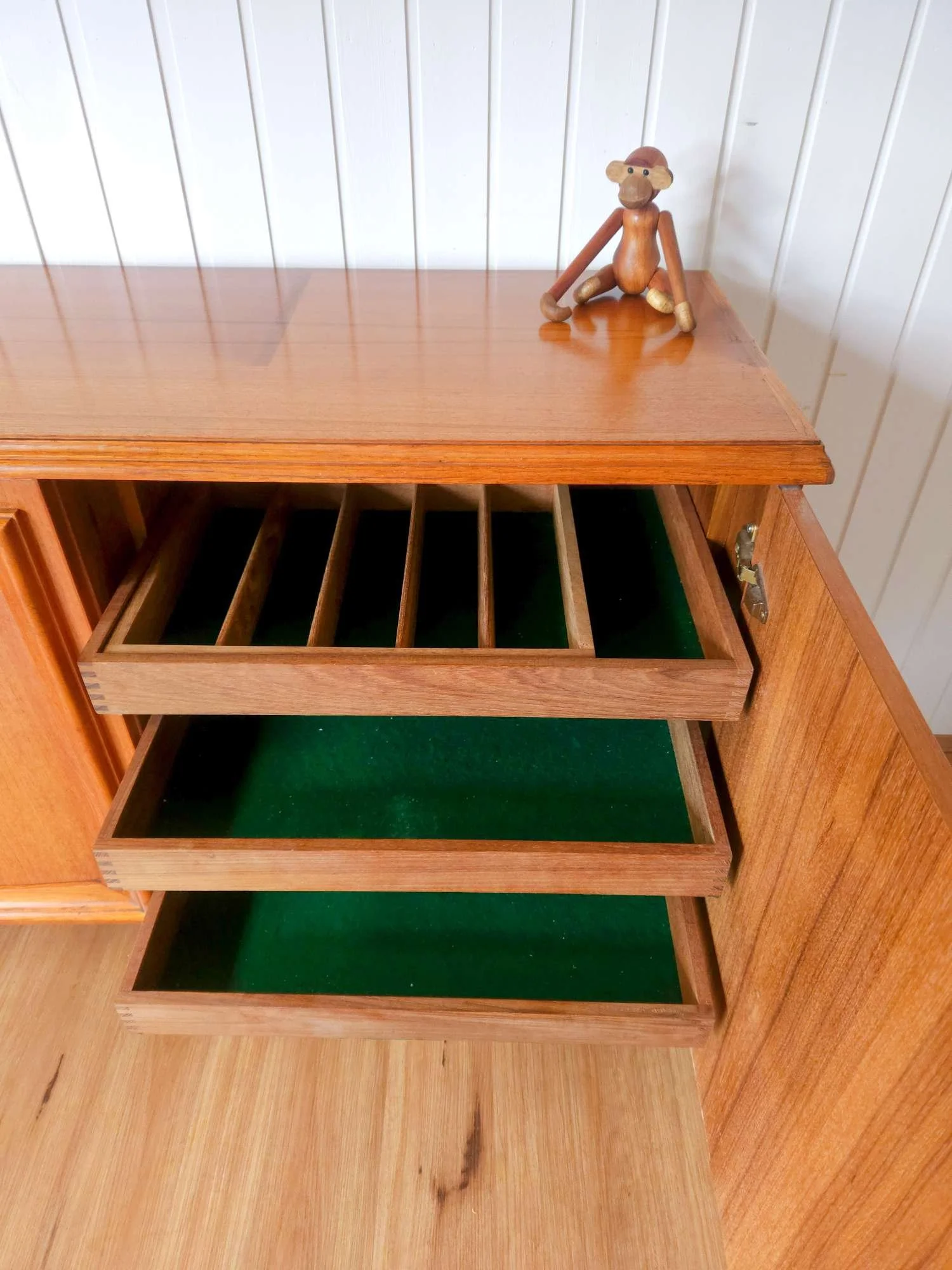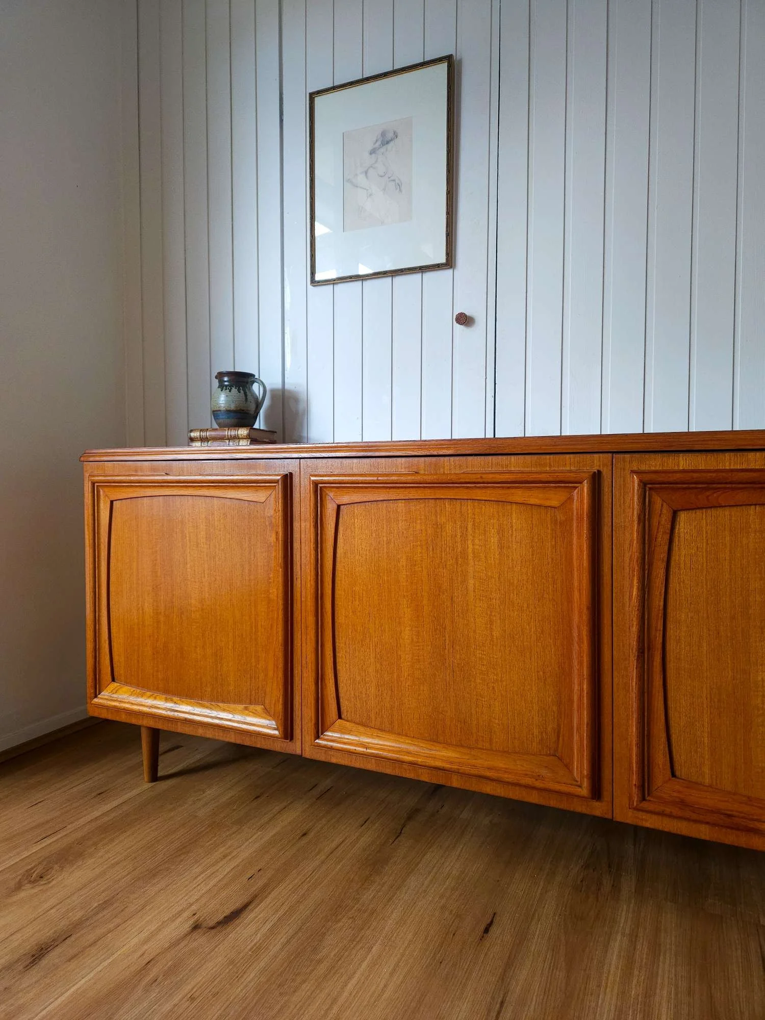 Classic teak vintage sideboard crafted by Burgess Furniture in Australia.