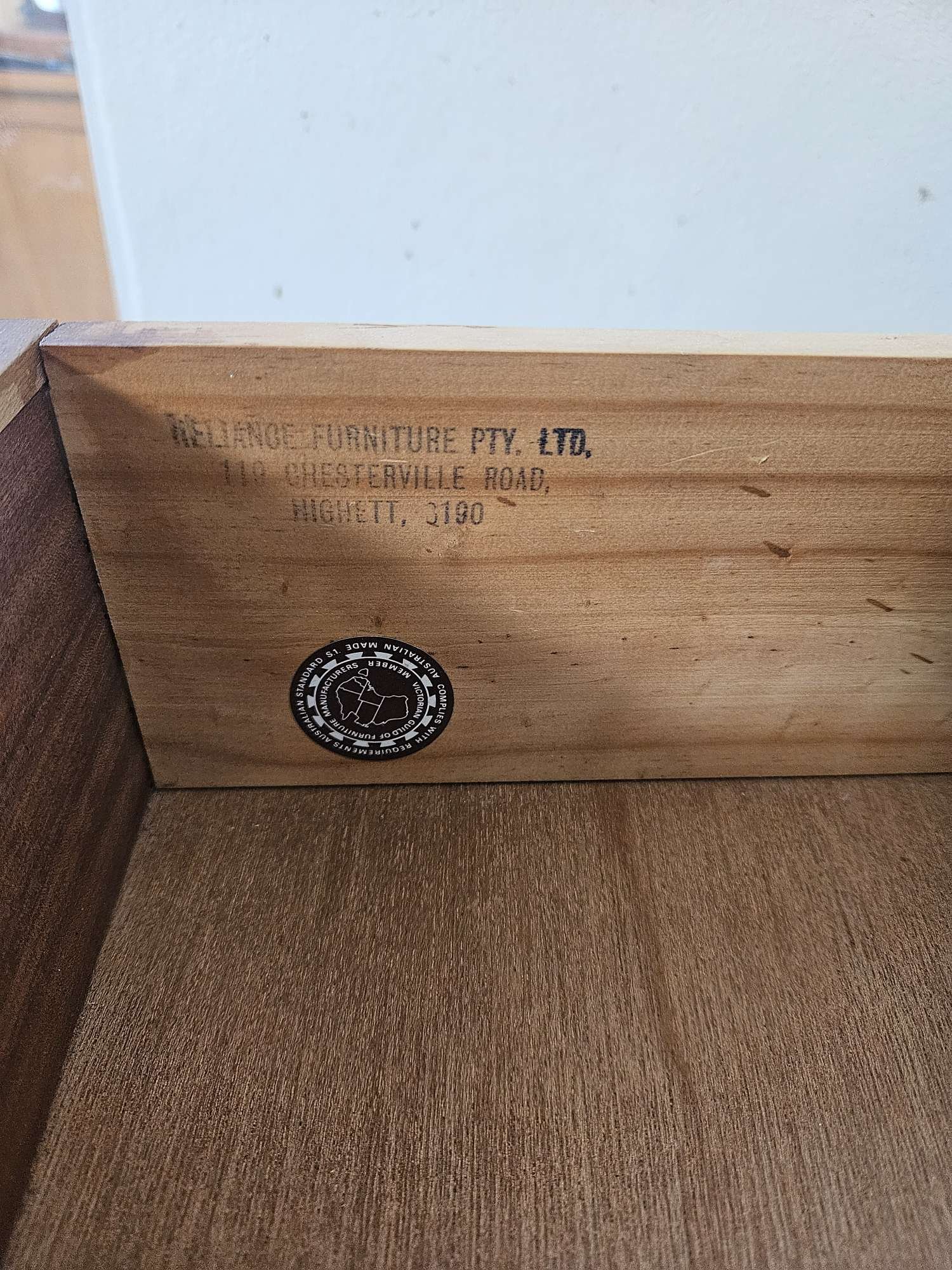 Classic Australian made mid century dresser by Reliance Furniture. Circa 1960s.