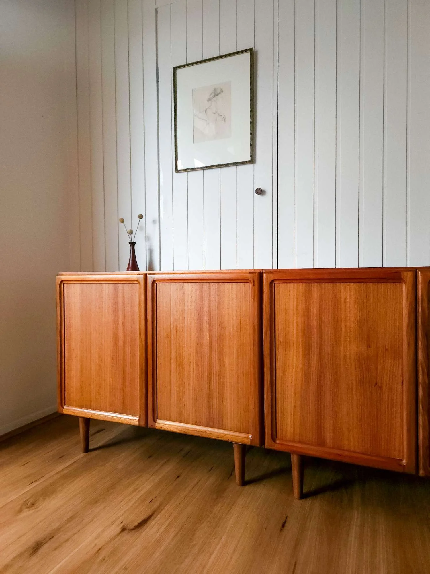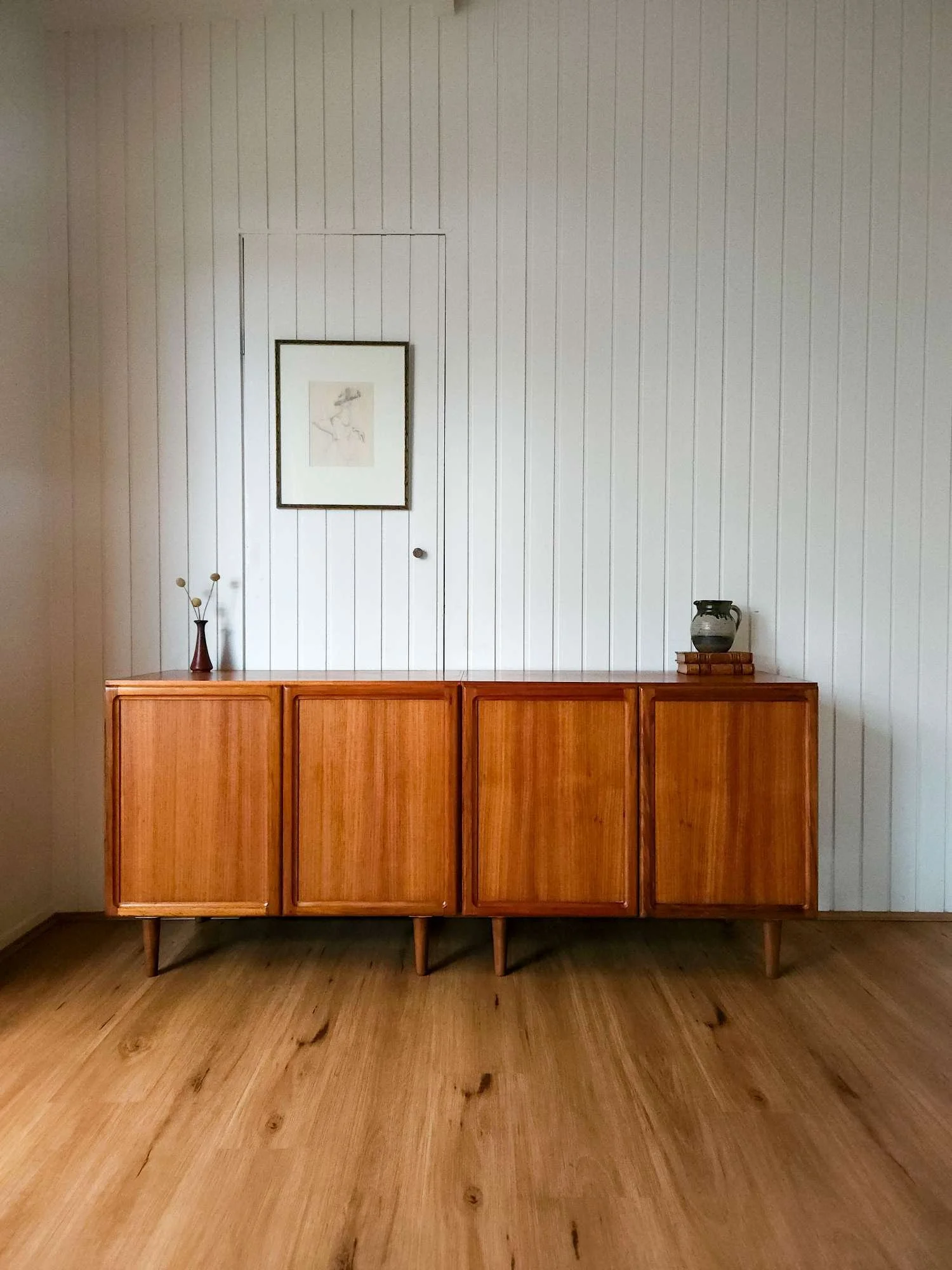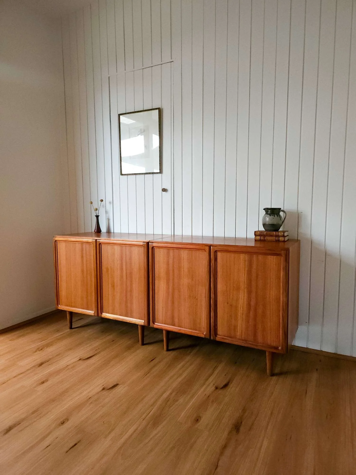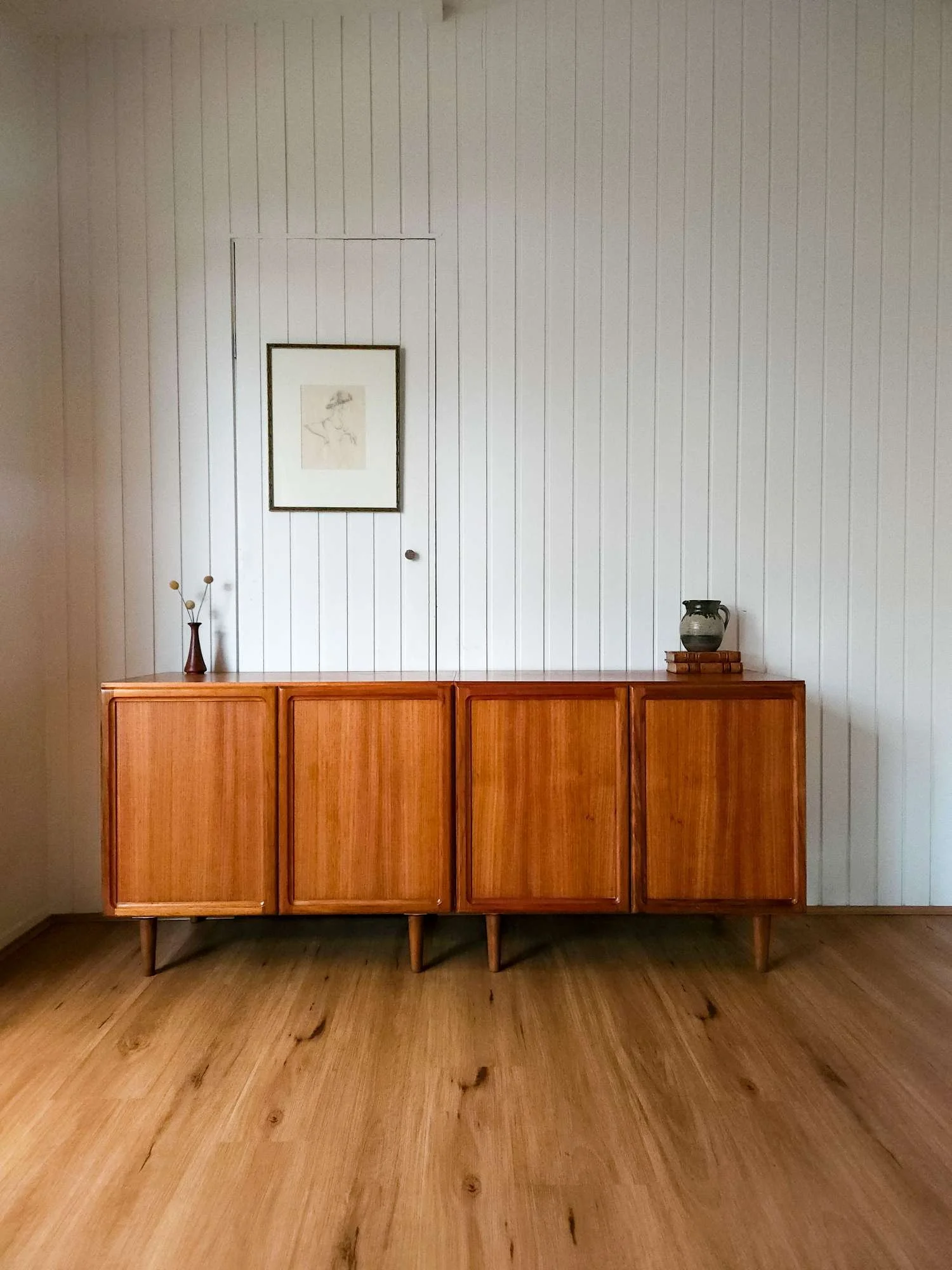 Classic mid century teak cabinets circa 1960s. Can be put together as a sideboard or placed separately.