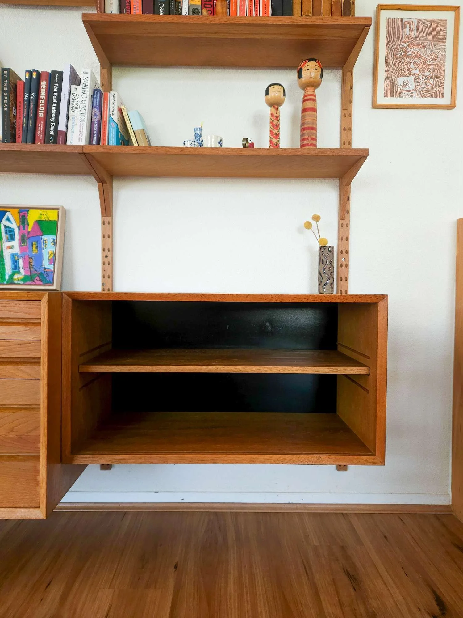 1 x Cabinet with adjustable shelf (ideal for record or book storage). This cabinet look like it may have had sliding doors originally. Does not come with the set.