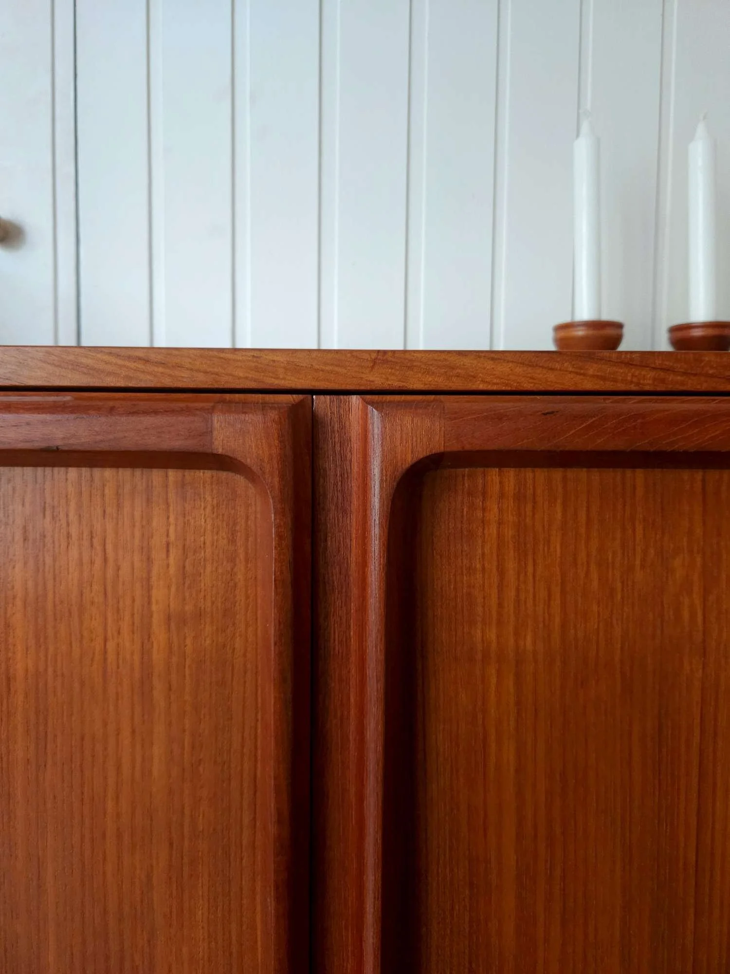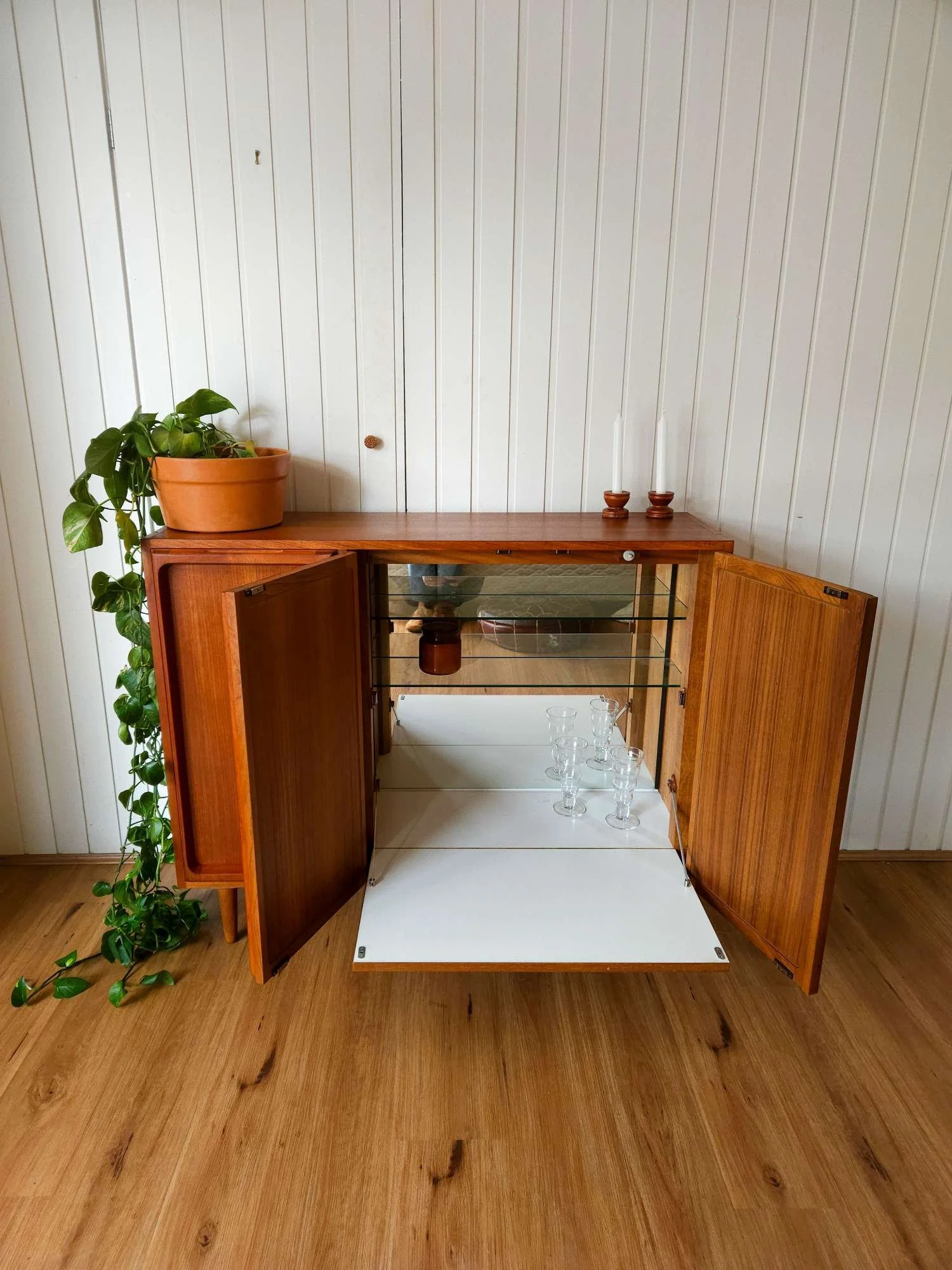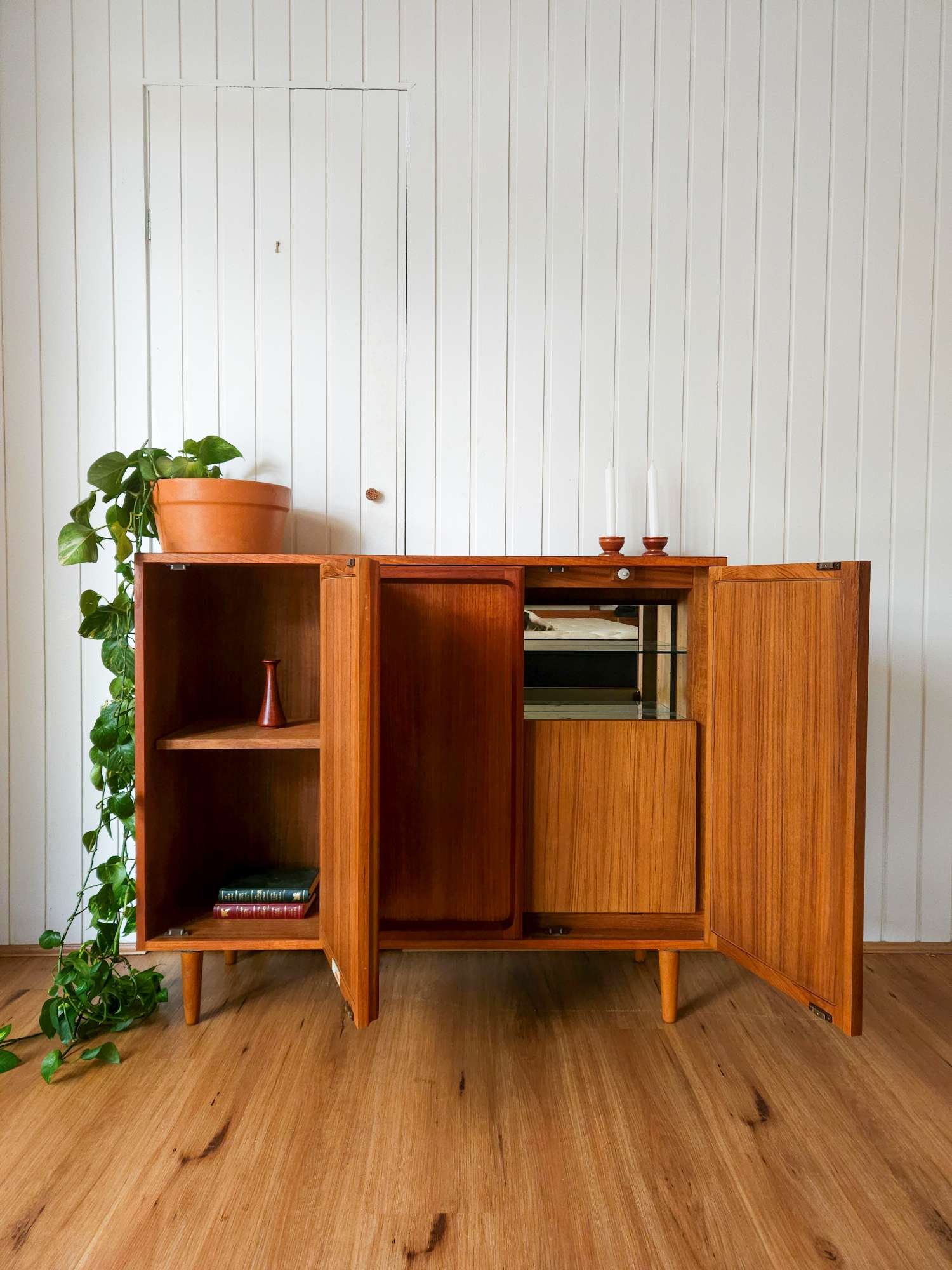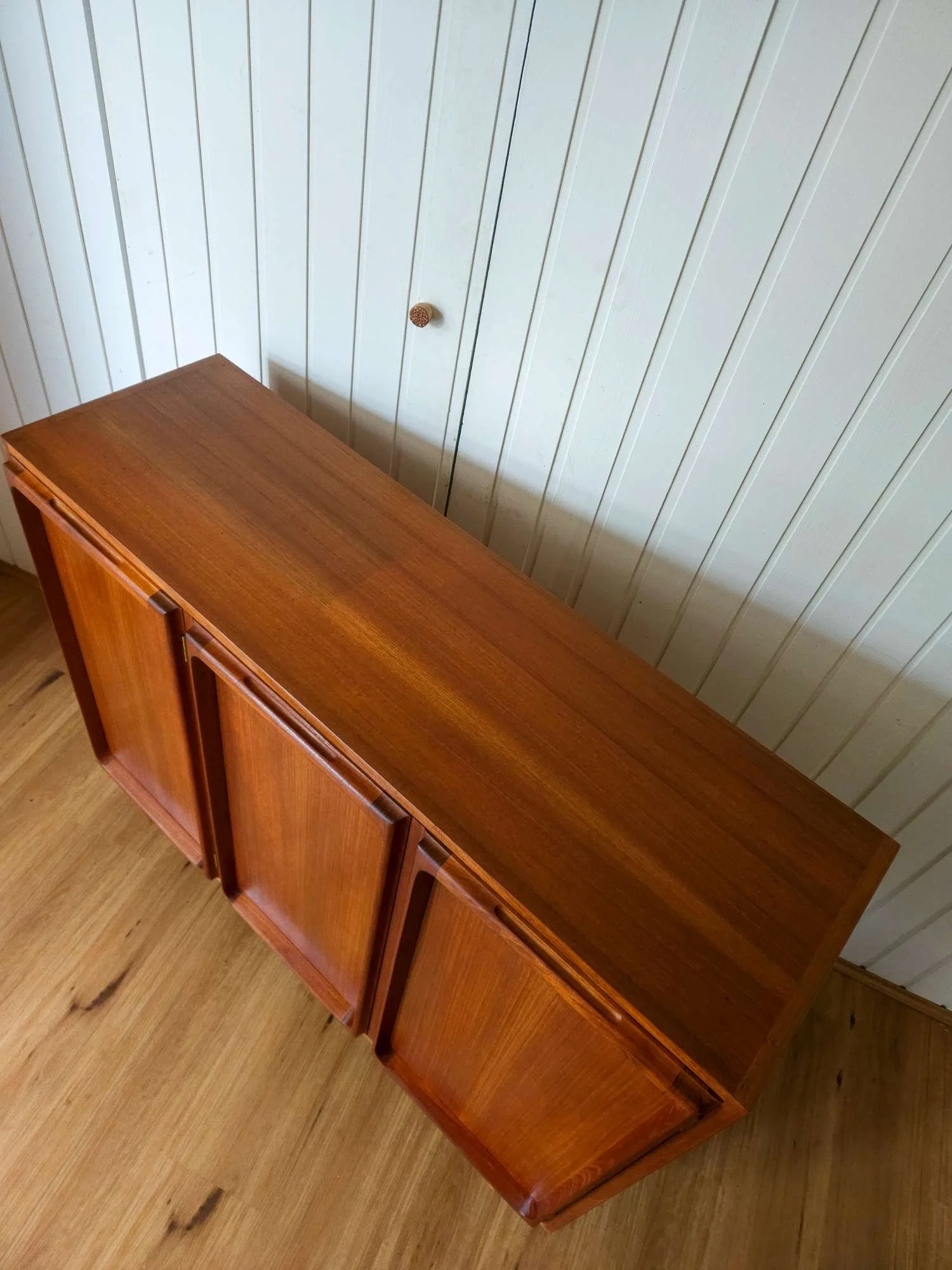 Presrnts in a goodvintage condition with a lovely deep teak patina.Very minor imperfections all commensurate with age. Slight variation in colour to the top and side as pictured. All doors operate smoohtly.