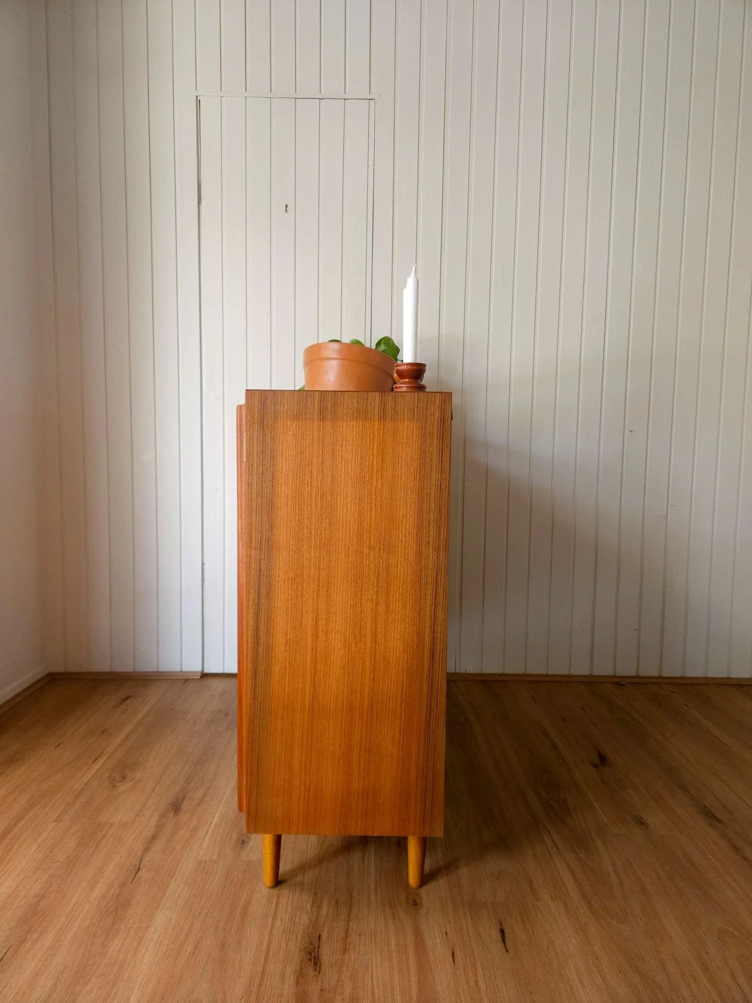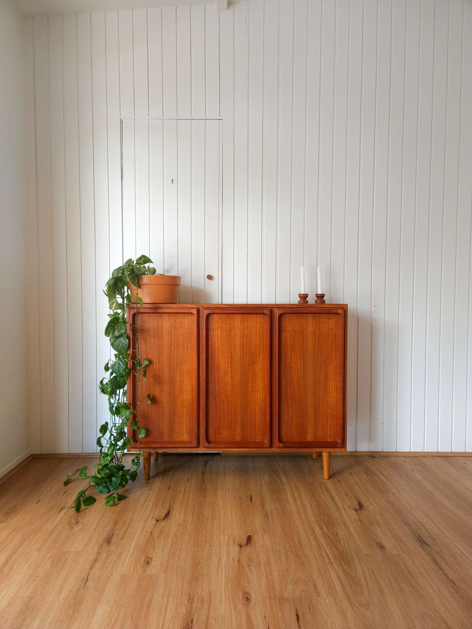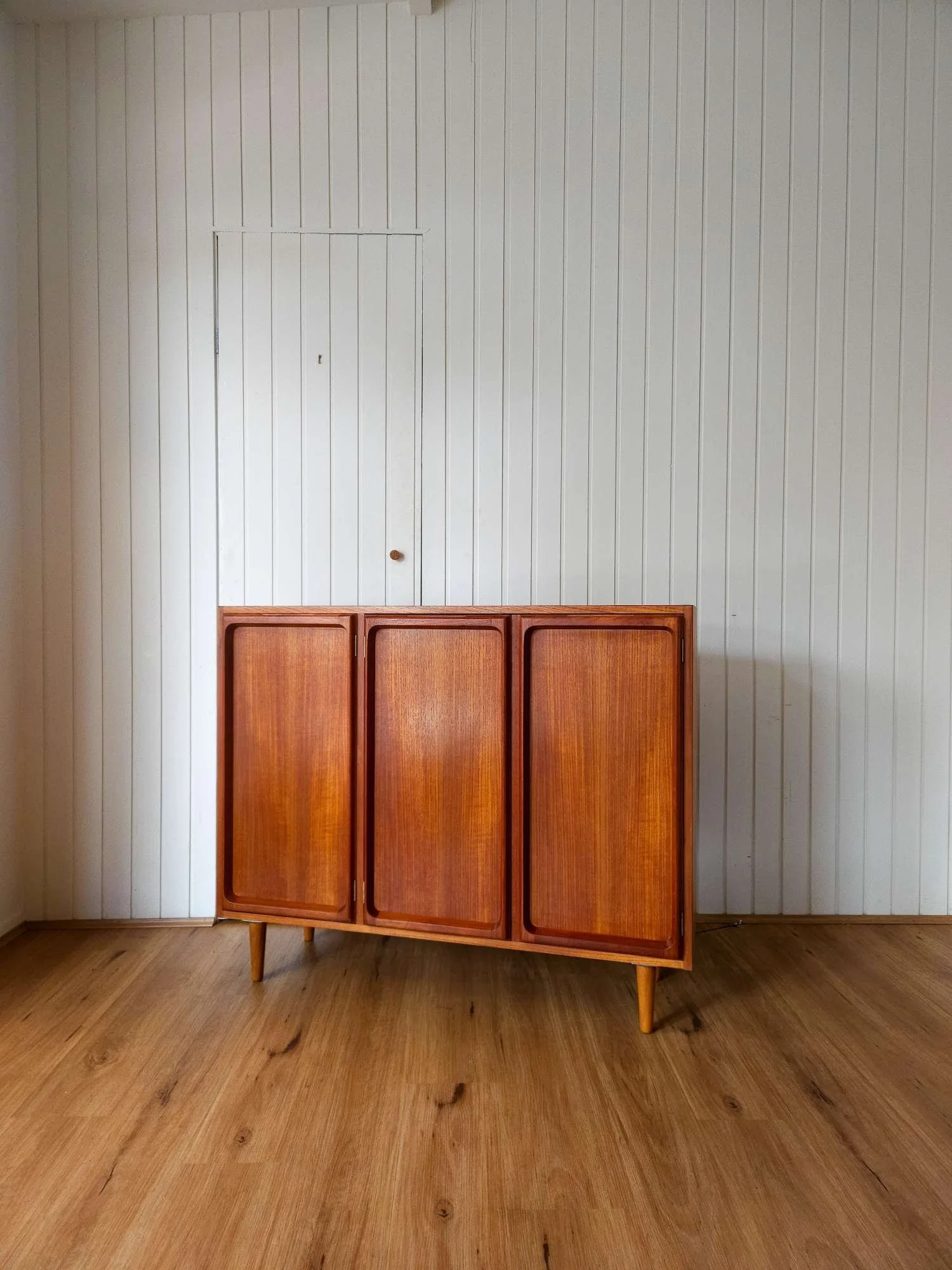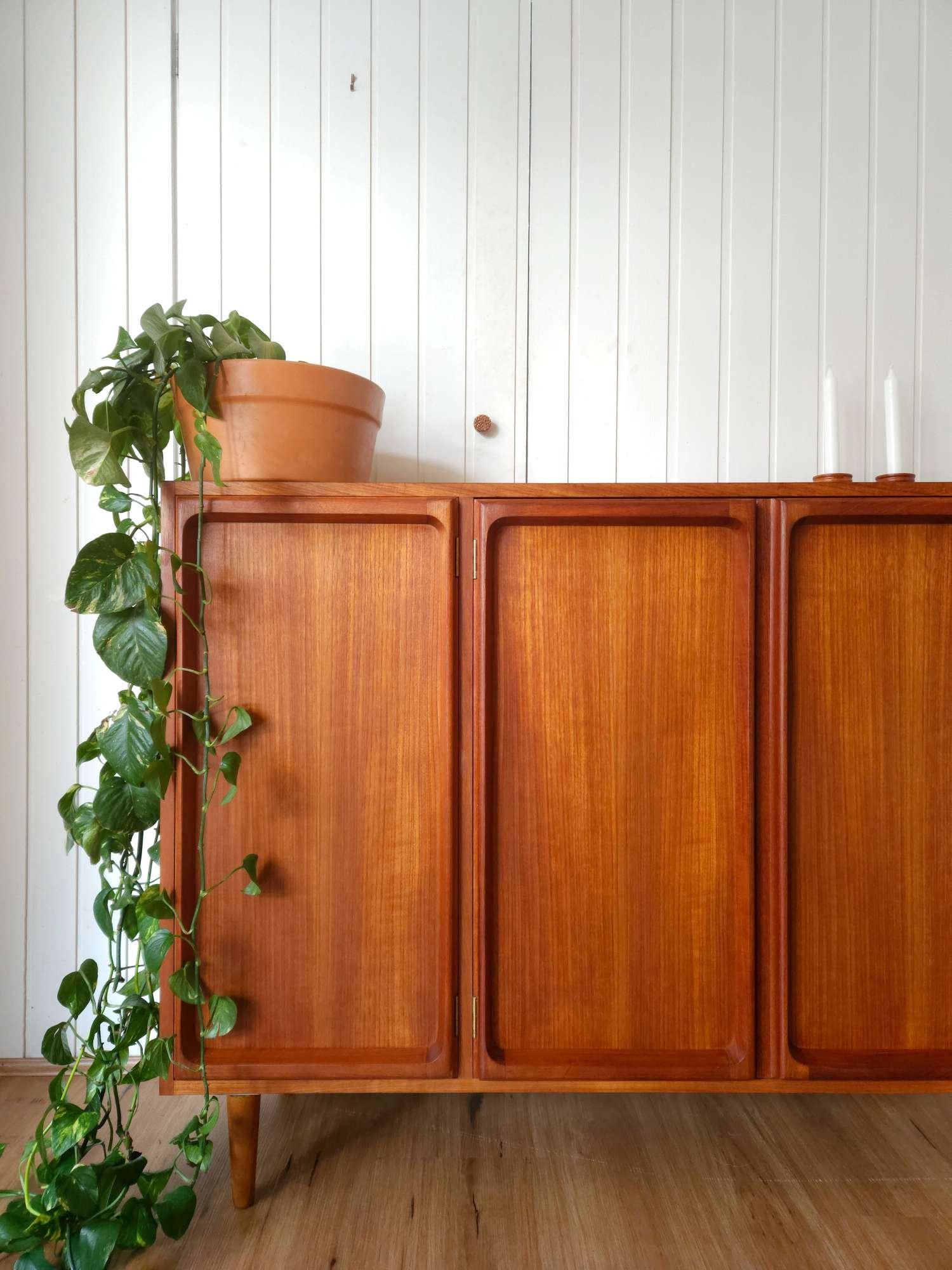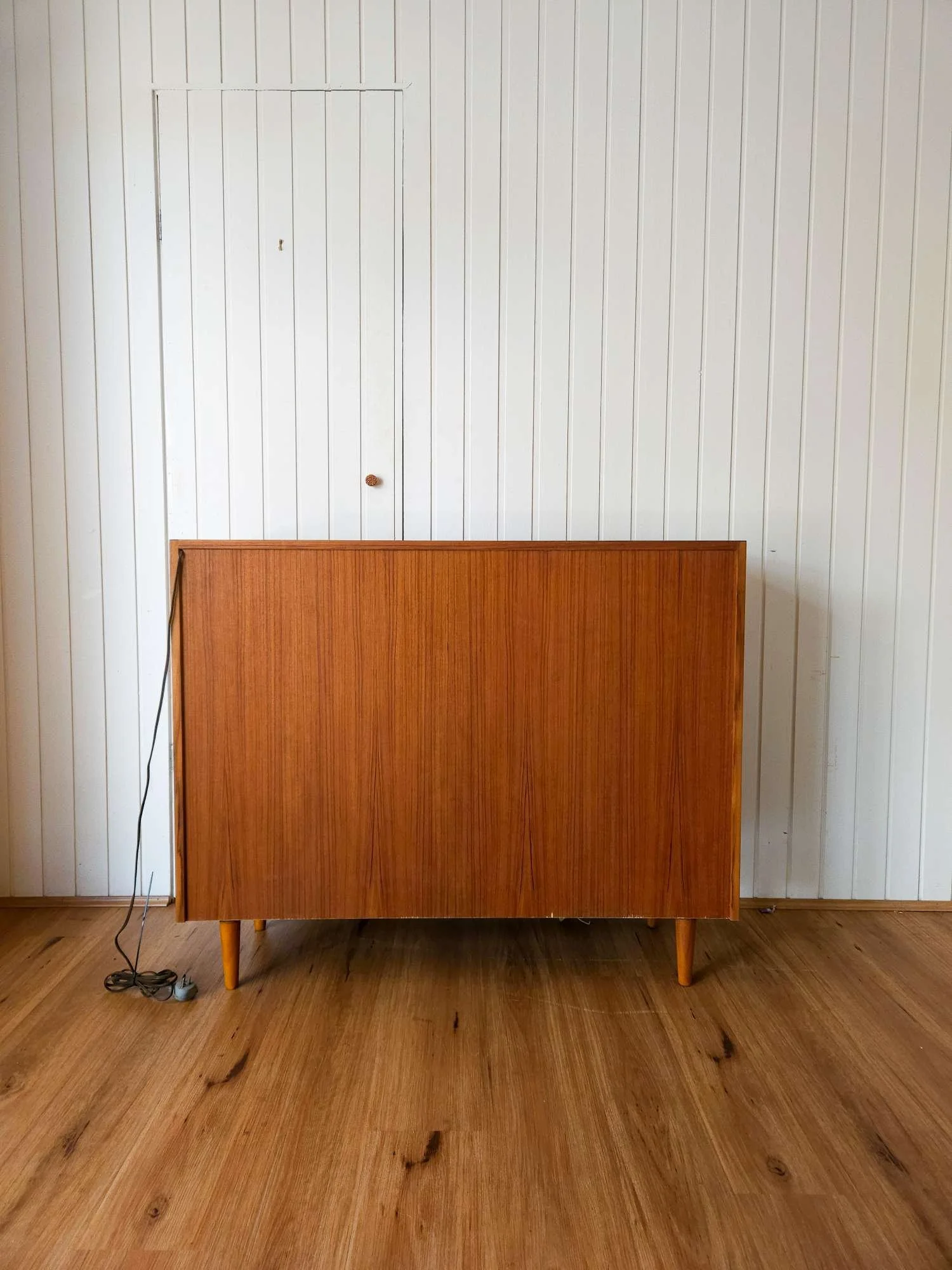 Presrnts in a goodvintage condition with a lovely deep teak patina.Very minor imperfections all commensurate with age. Slight variation in colour to the top and side as pictured. All doors operate smoohtly.