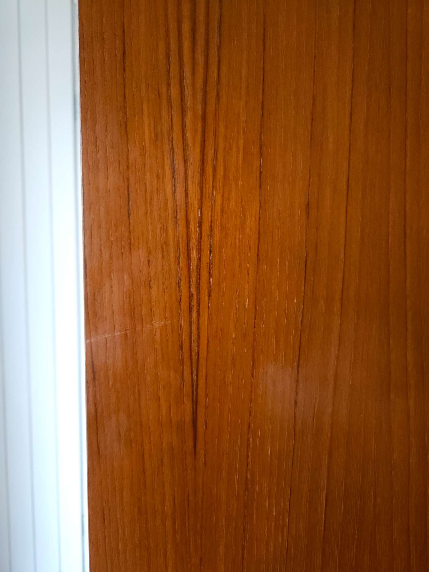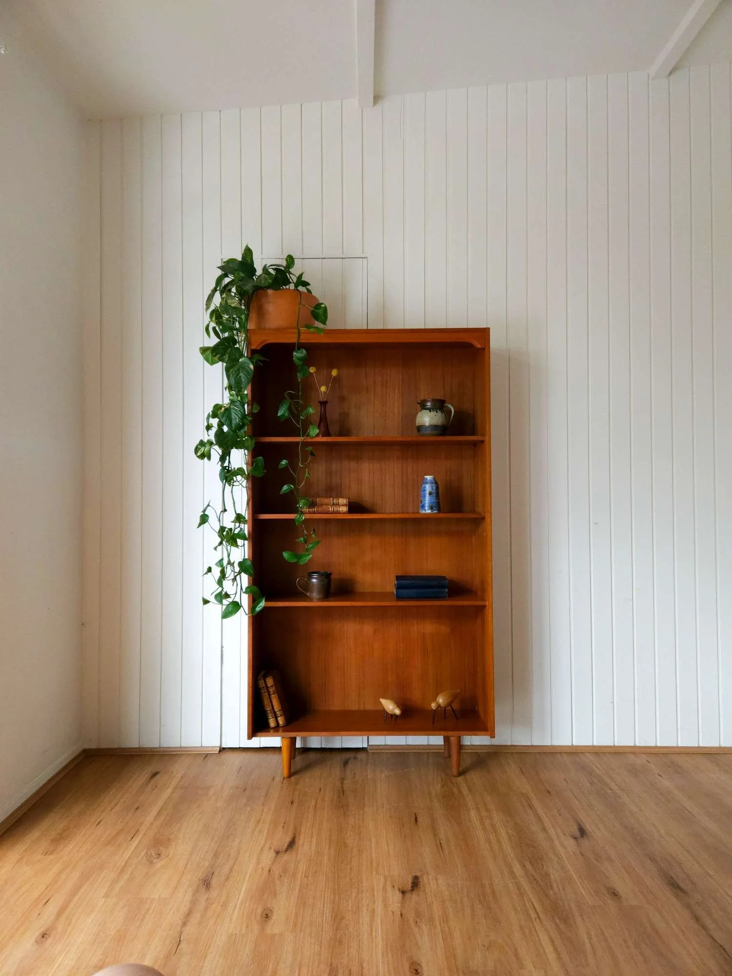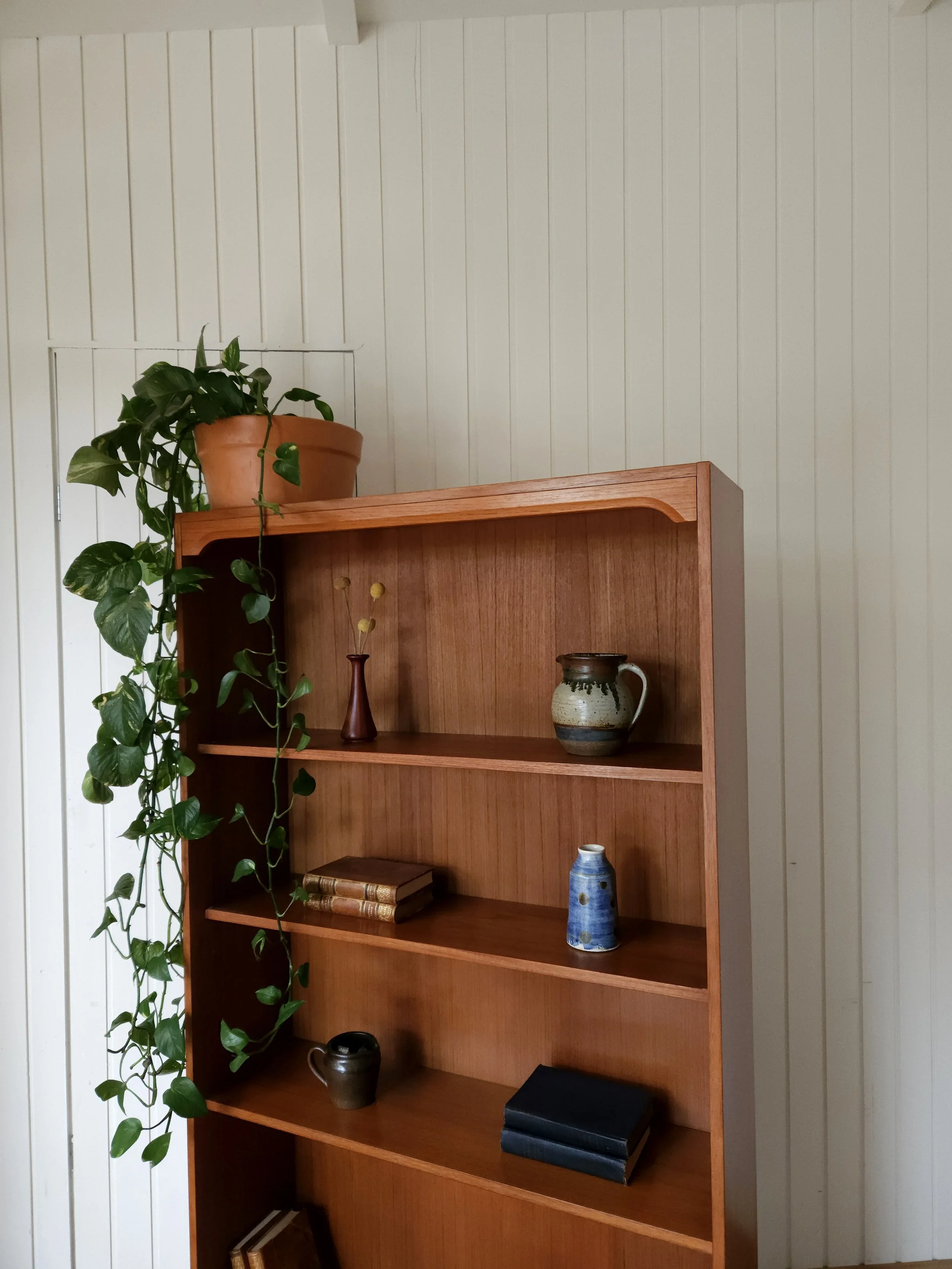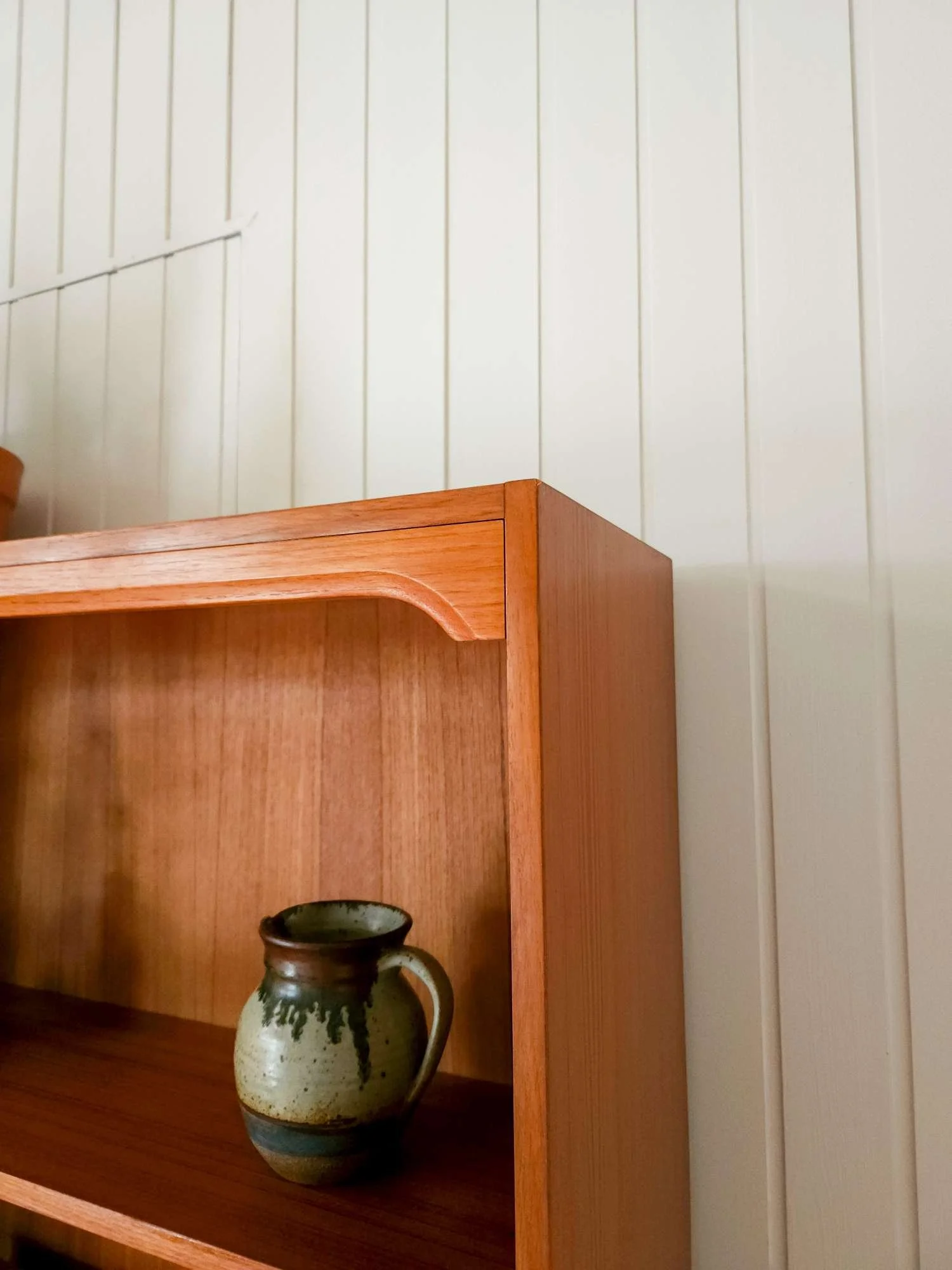 Features adjustable shelves, tapered legs and a gorgeous warm timber grain.