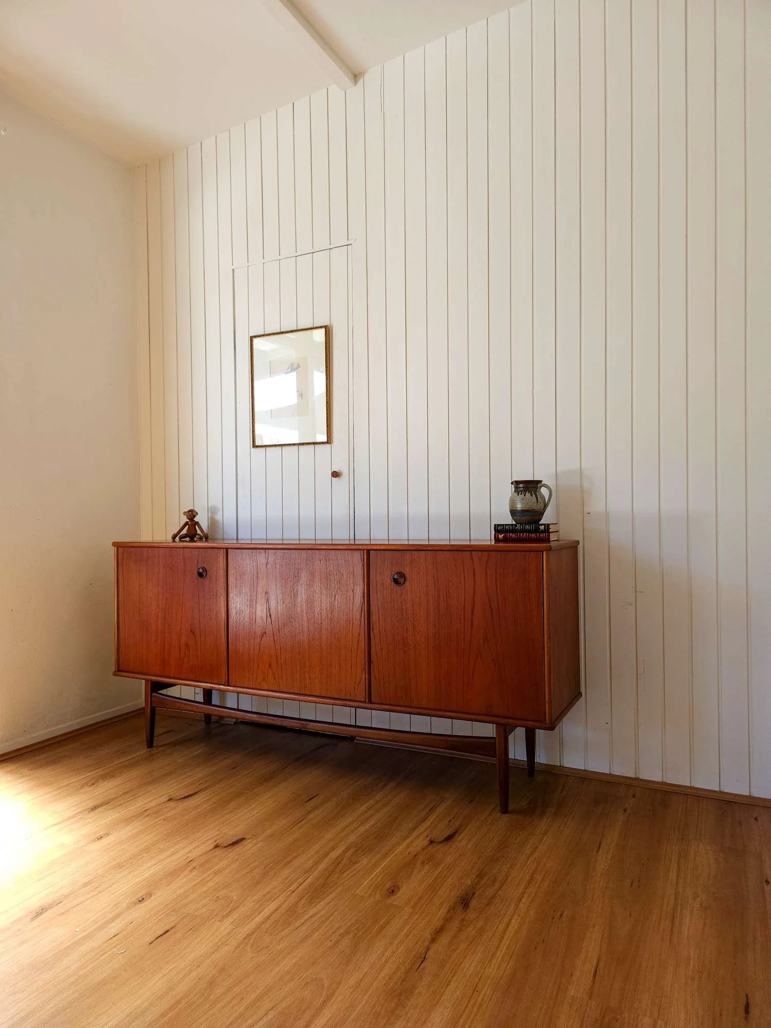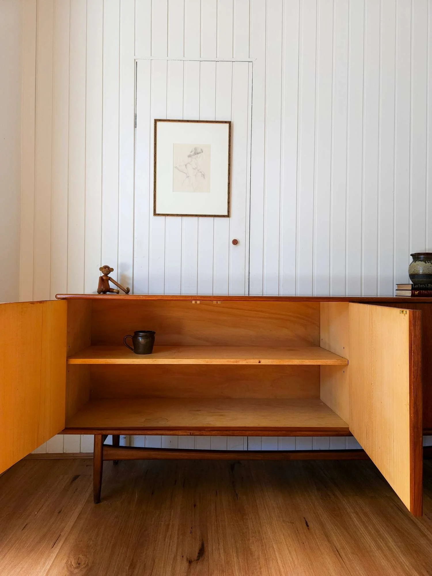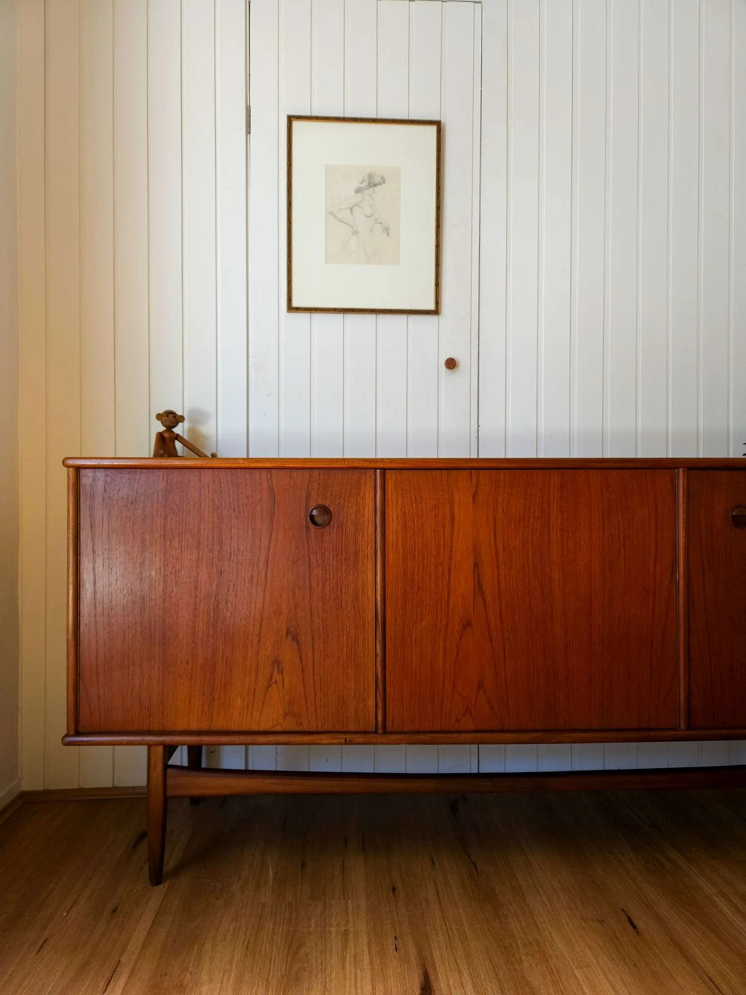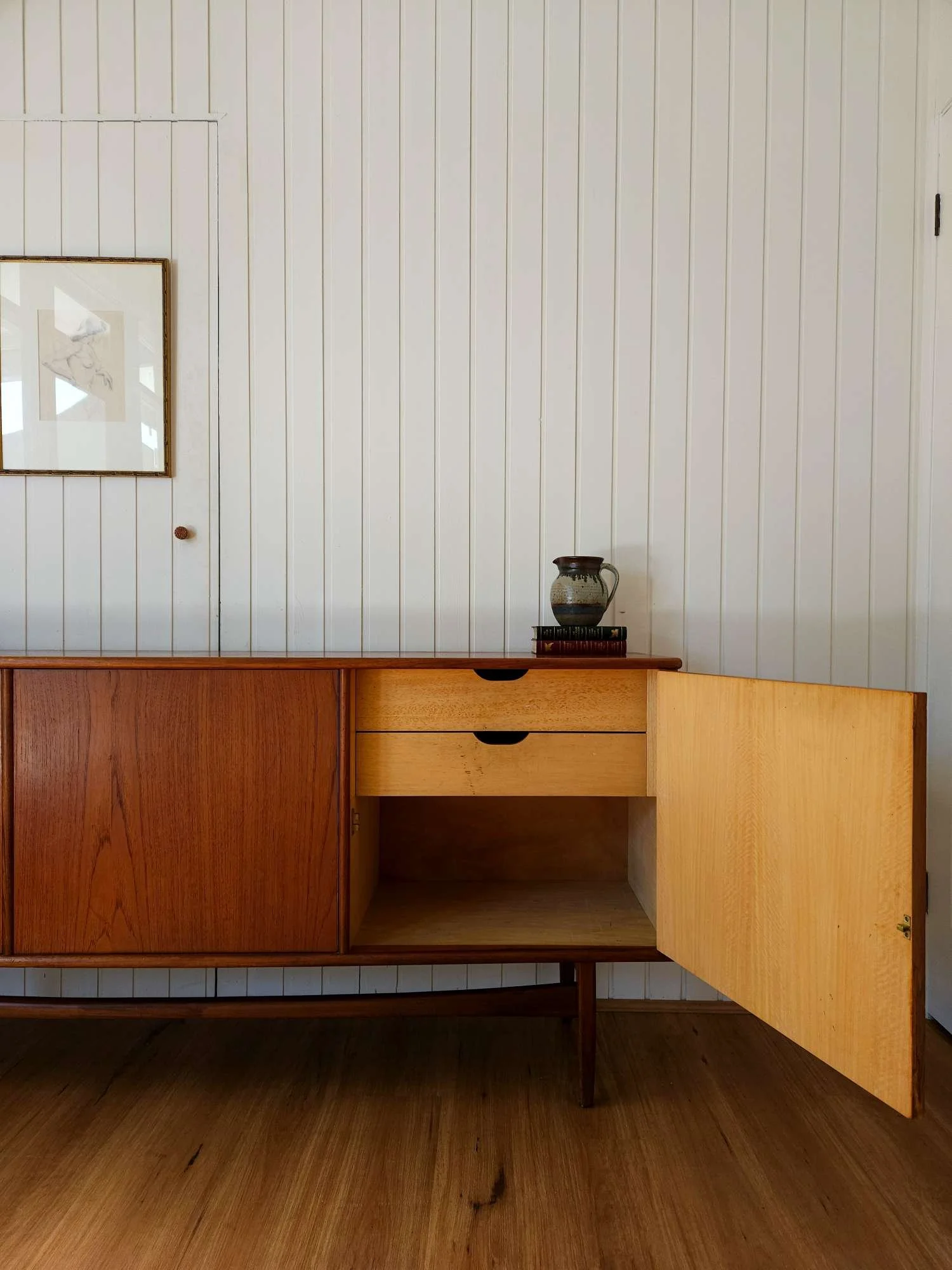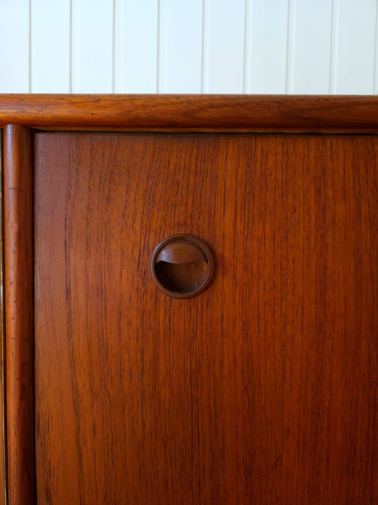 Classic mid century sideboard crafted in teak by Scope Furniture.