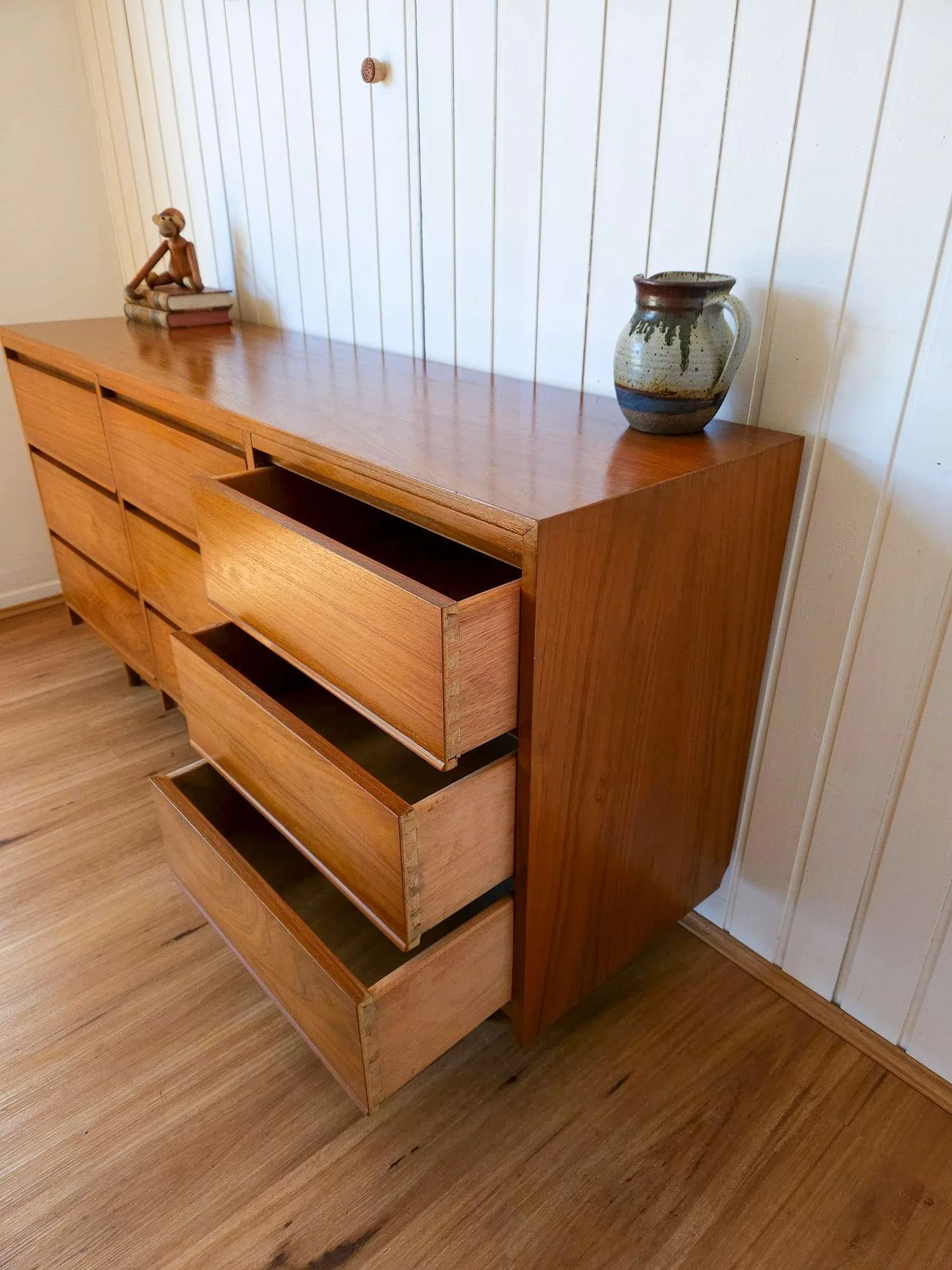 In good vintage condition with no evident damage. Minor signs of wear according to age with some scratches to the side as pictured. Solid and steady with all drawers operating smoohtly.