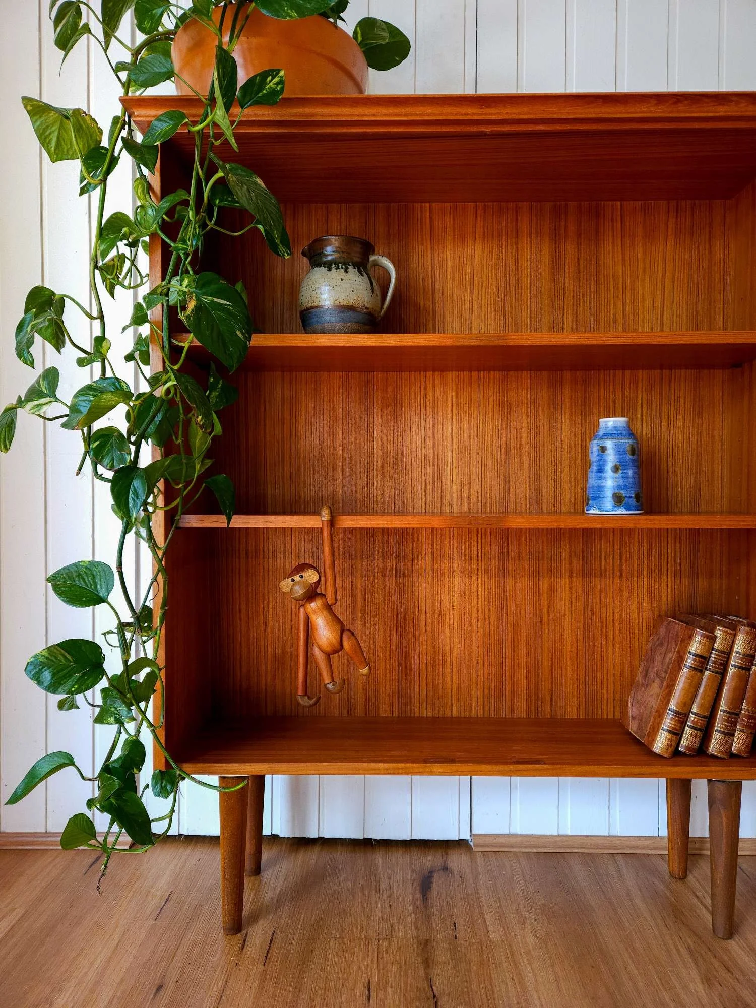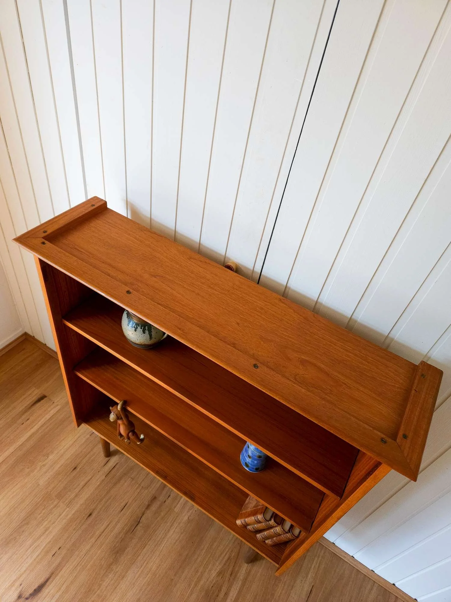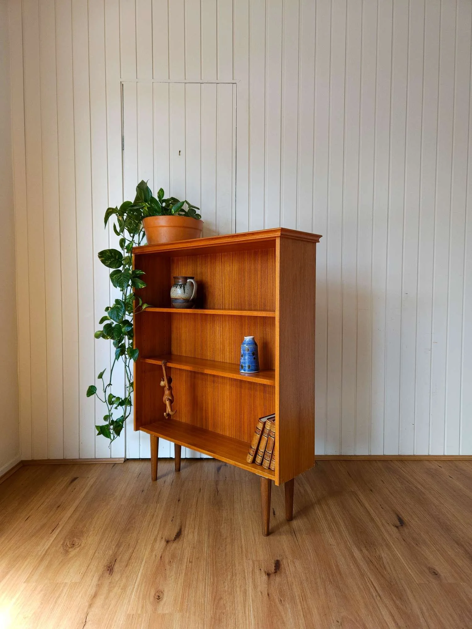 Mid century vintage bookshelf in teak.Has been elevated on tapered timber legs.