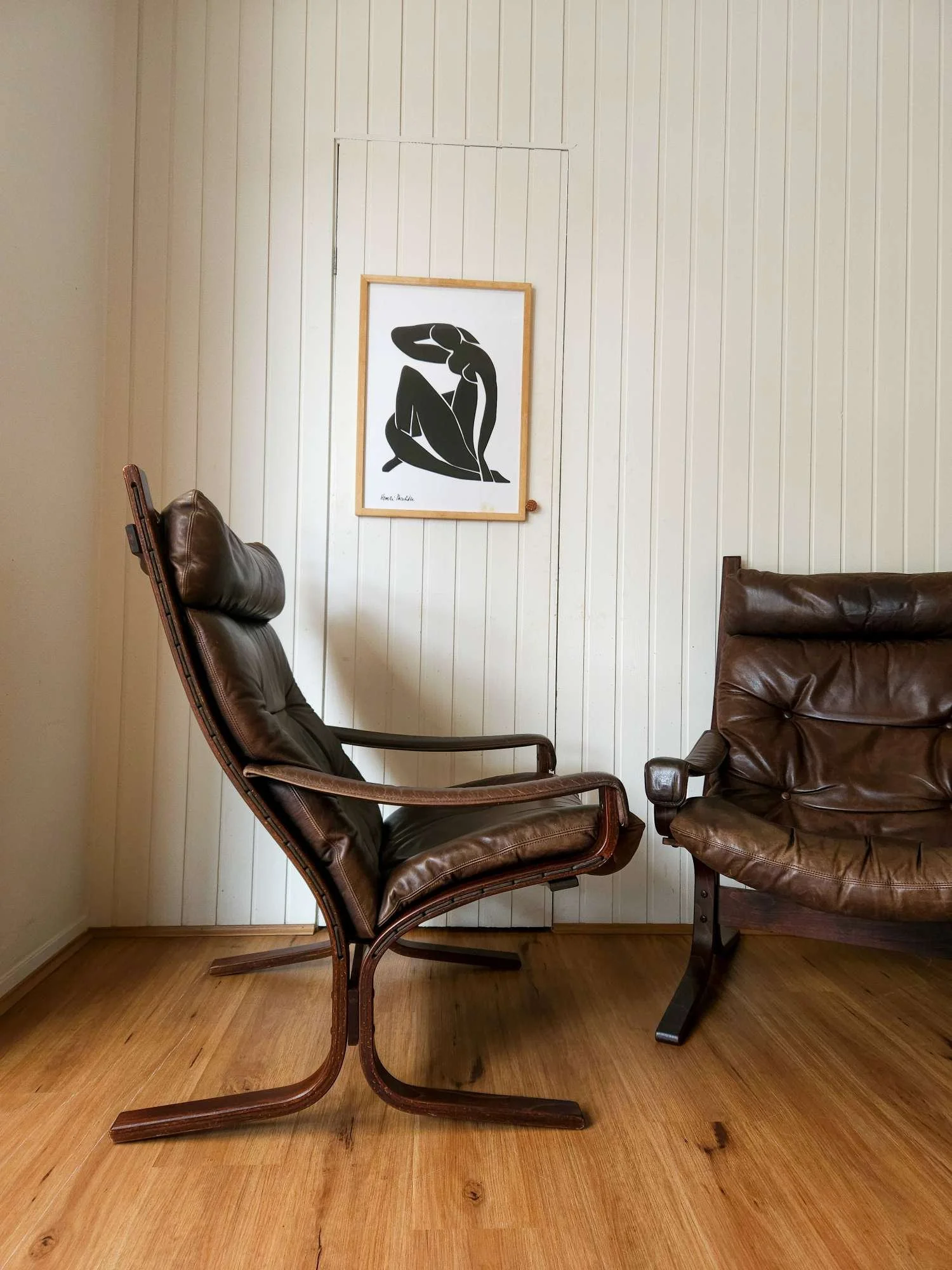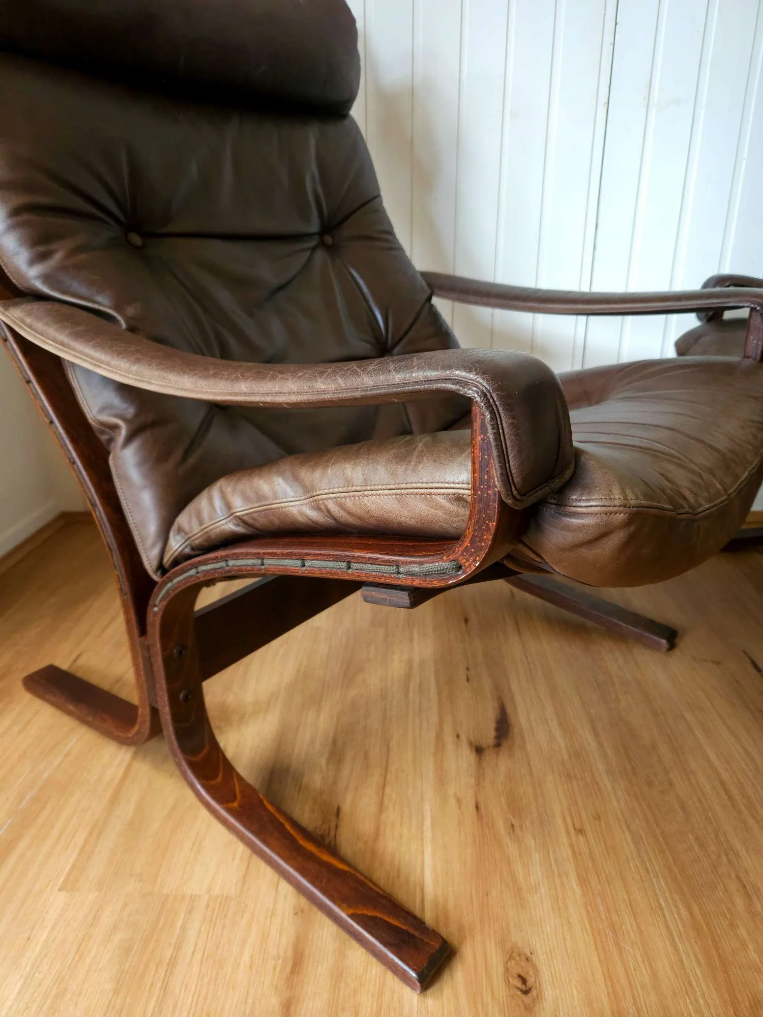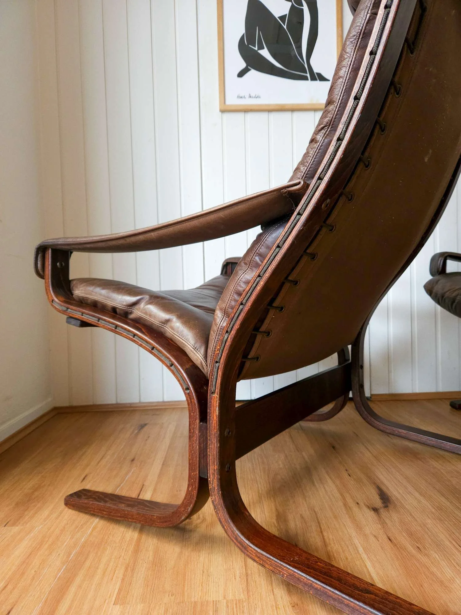 Iconic pair of Siesta armchairs by Ingmar Relling for Westnofa Norway. Crafted circa 1960s with original makers mark to both chairs.