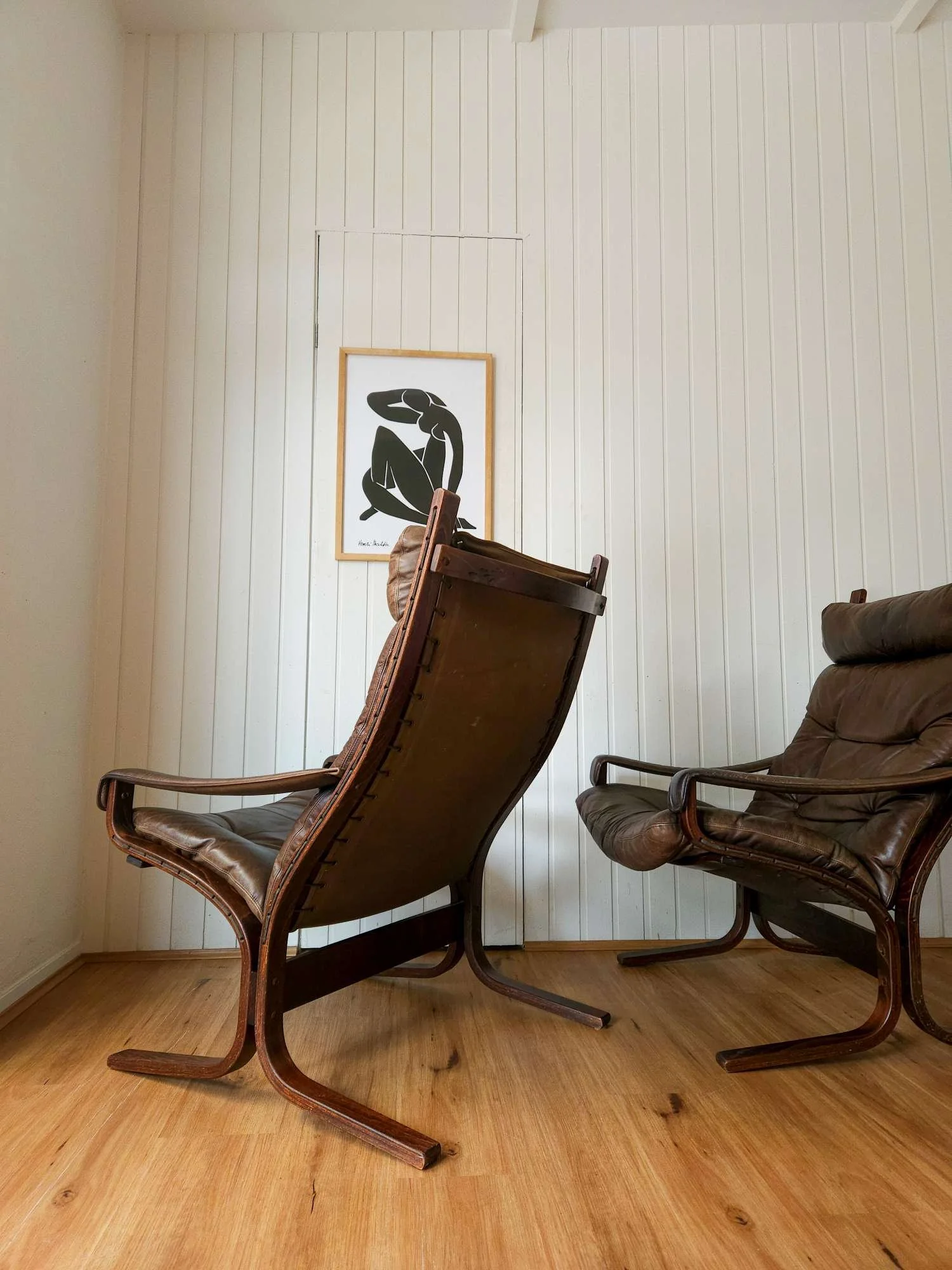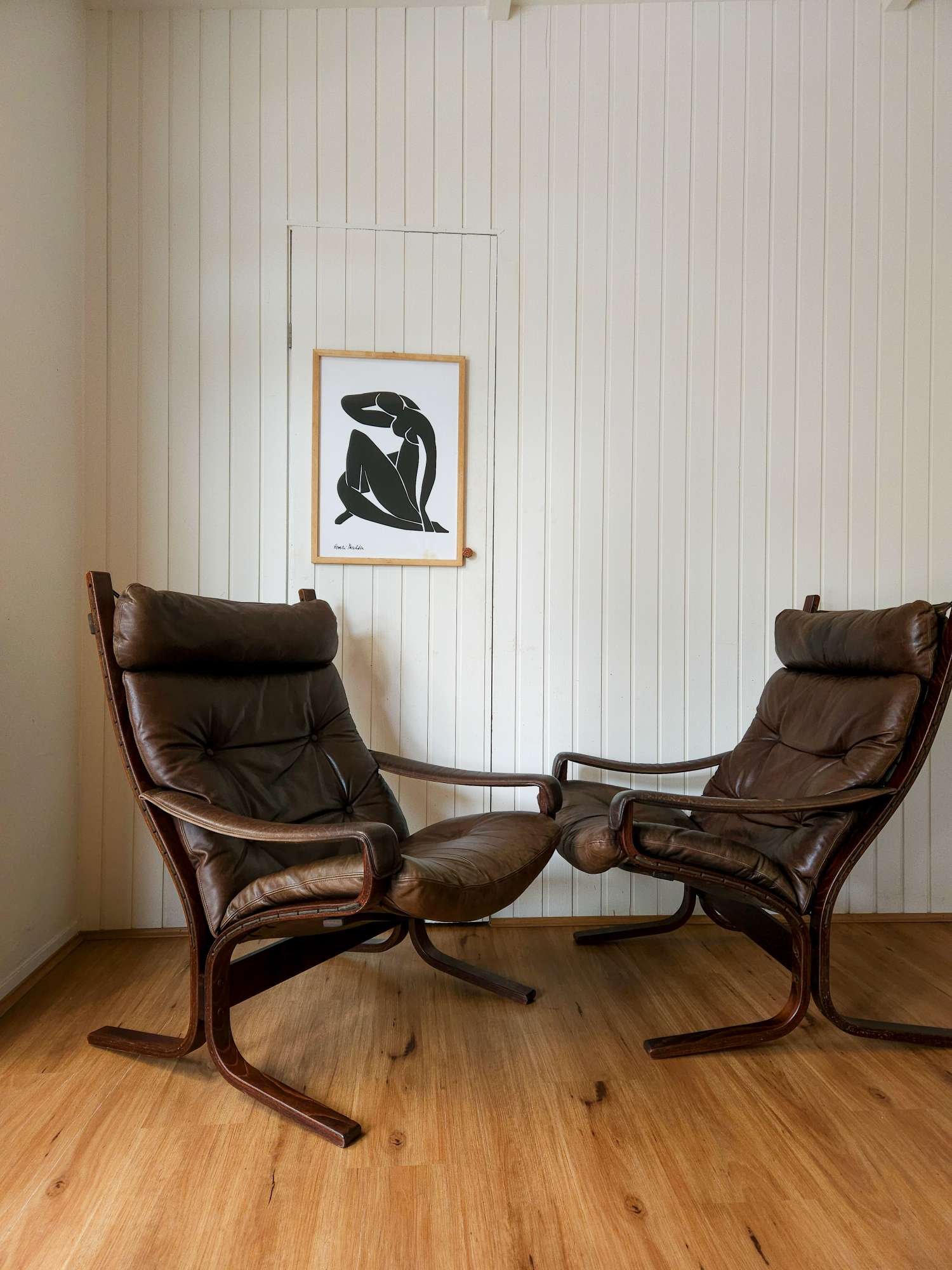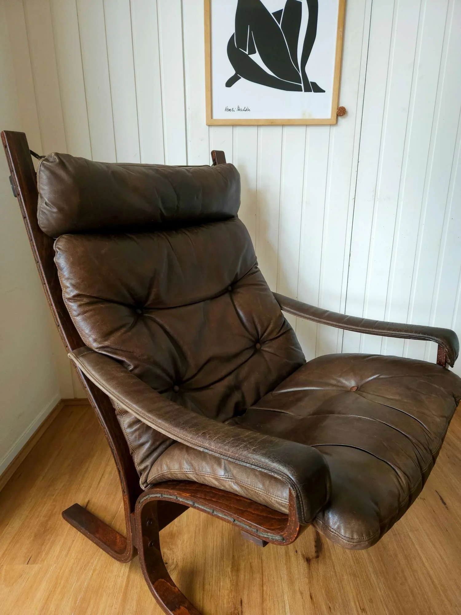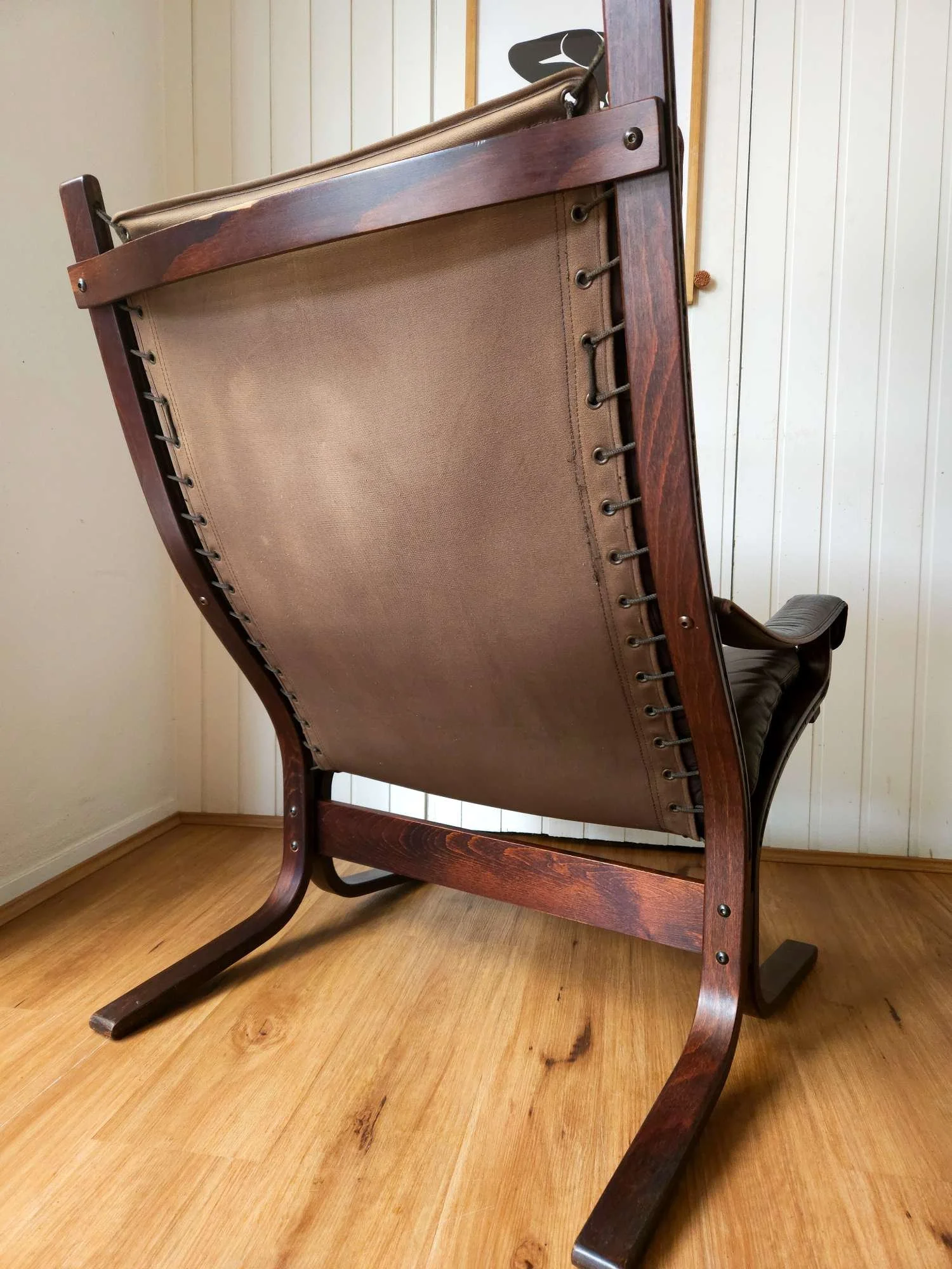Iconic pair of Siesta armchairs by Ingmar Relling for Westnofa Norway. Crafted circa 1960s with original makers mark to both chairs.