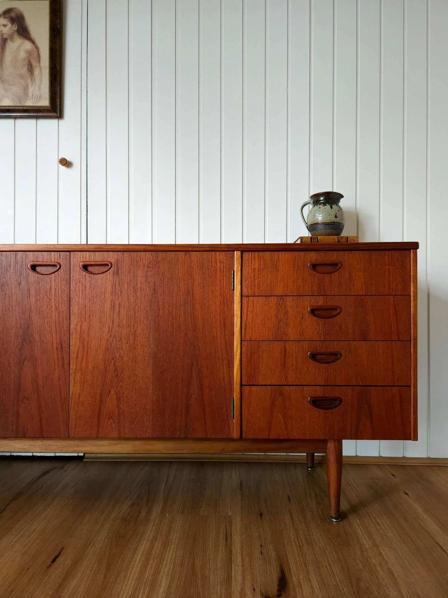 Mid Century Vintage Teak Solid Sideboard Buffet